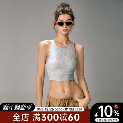 Choc女孩固定杯运动内衣女无袖瑜伽服背心螺纹透气跑步健身文胸夏