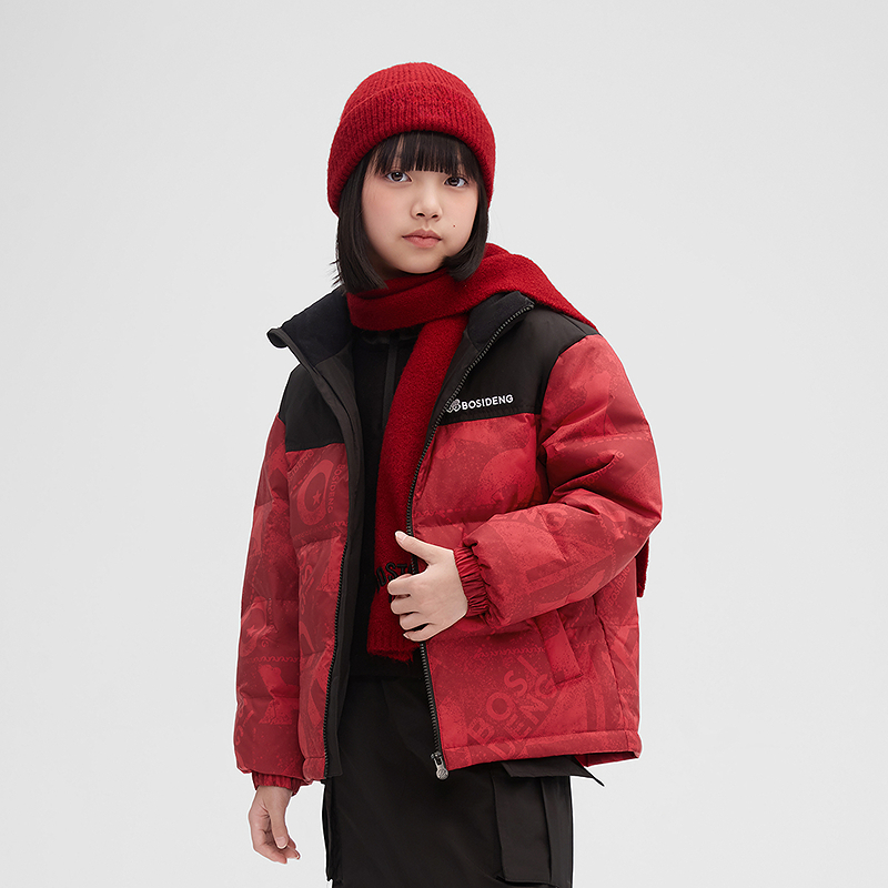 波司登2025新款男女童大小童中性时尚运动拼色四防面包服羽绒服
