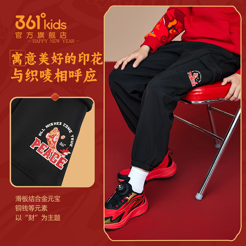 361°童装男童梭织加厚长裤2026春季新款中大童加绒保暖运动裤子