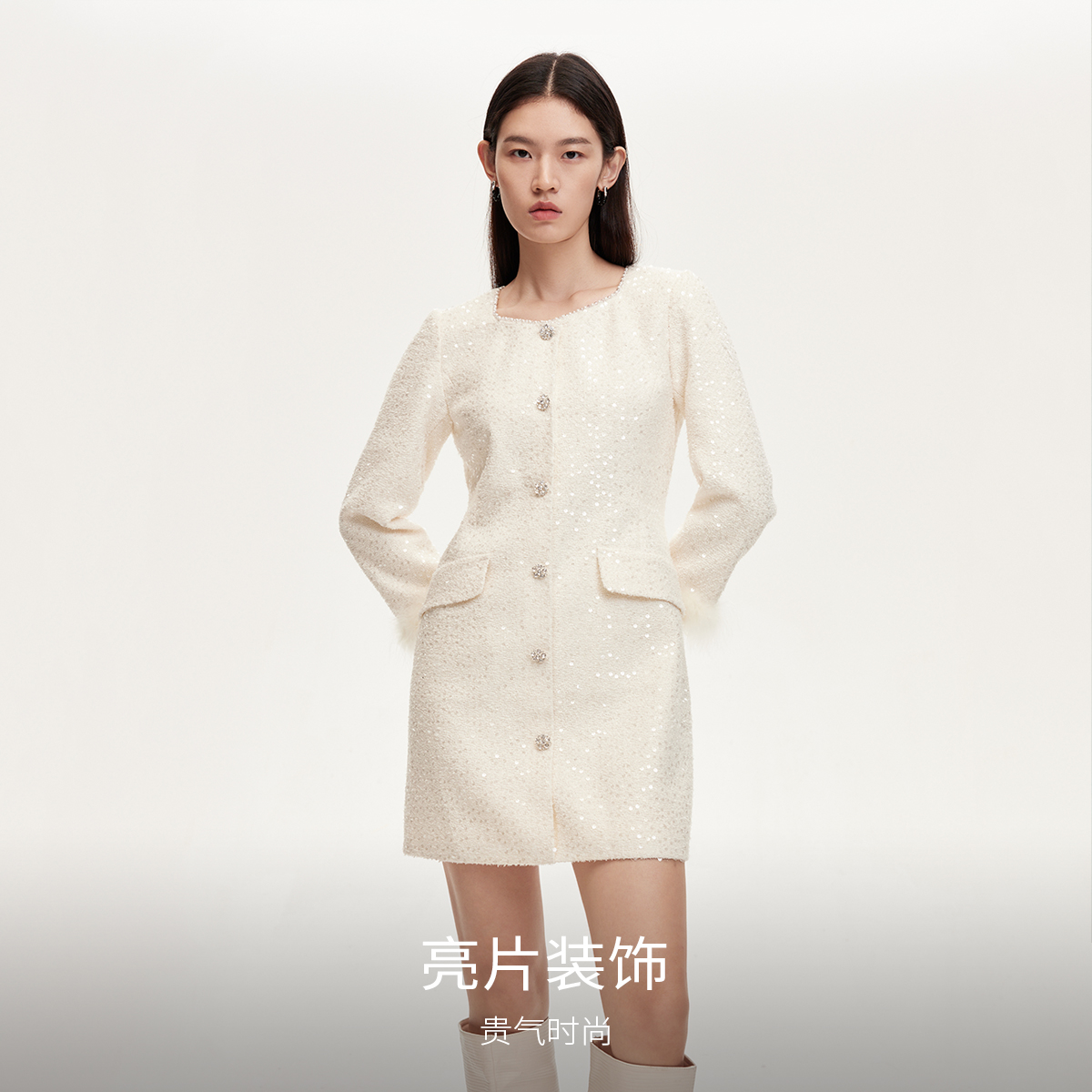 Vero Moda奥莱连衣裙秋冬新款亮片小香风羽毛袖口气质通勤流行