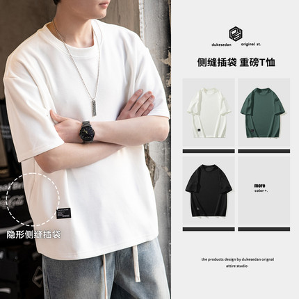 重磅美式短袖T恤男夏季圆领宽松大码半袖上衣潮牌男士休闲体恤衫