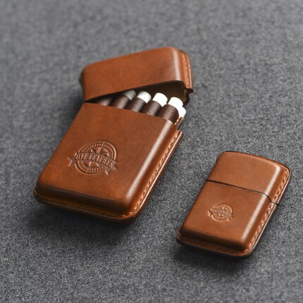 一皮one leather 经典复古香咽盒10支装烟盒男便携高档植鞣牛皮