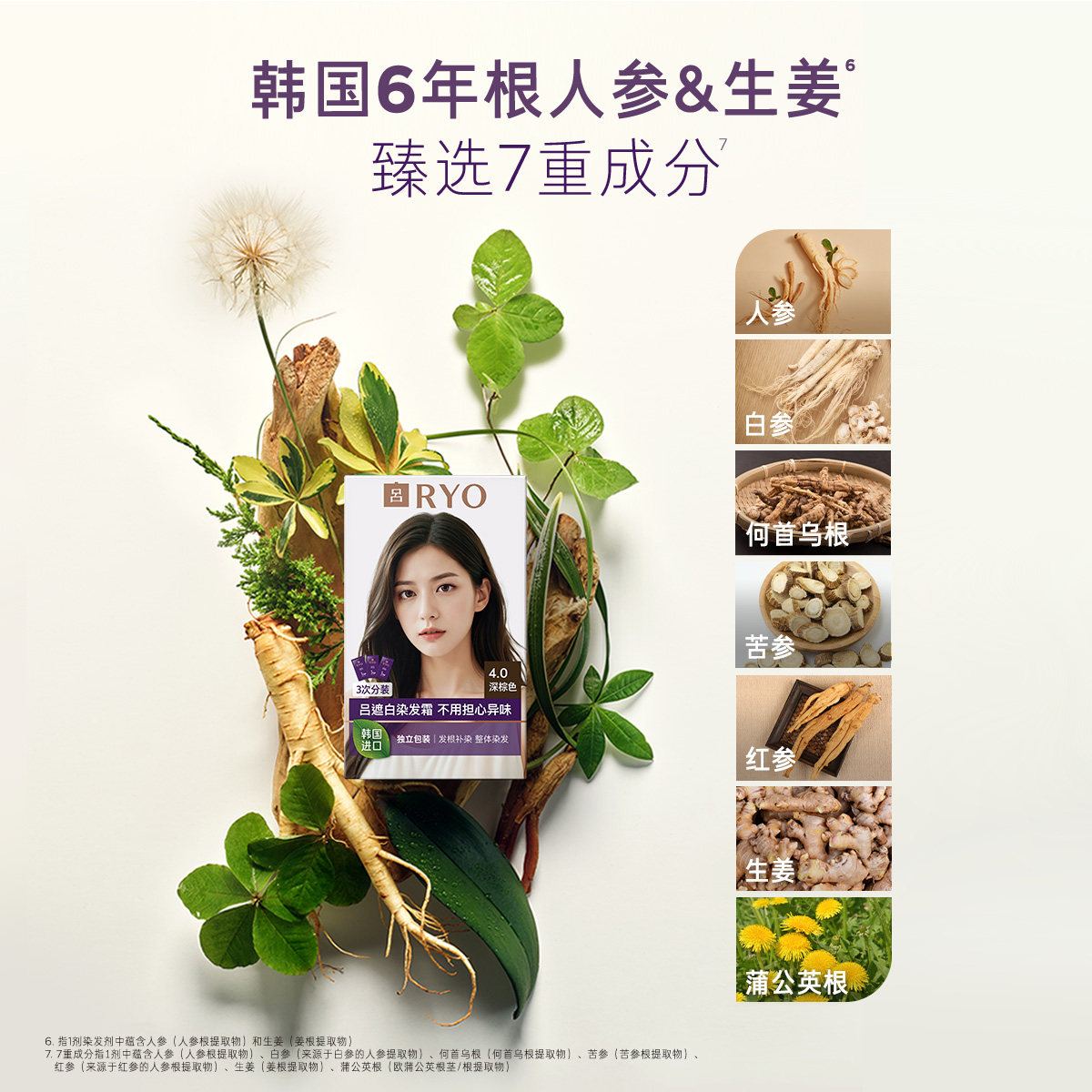 【百补专享】RYO吕安心染发膏染发霜盖白遮白染发剂爱茉莉