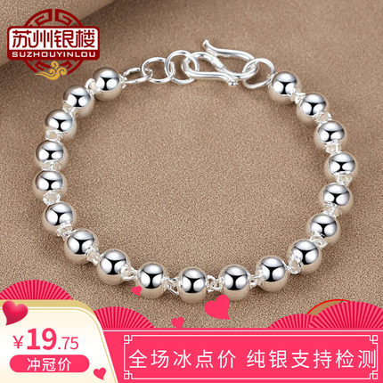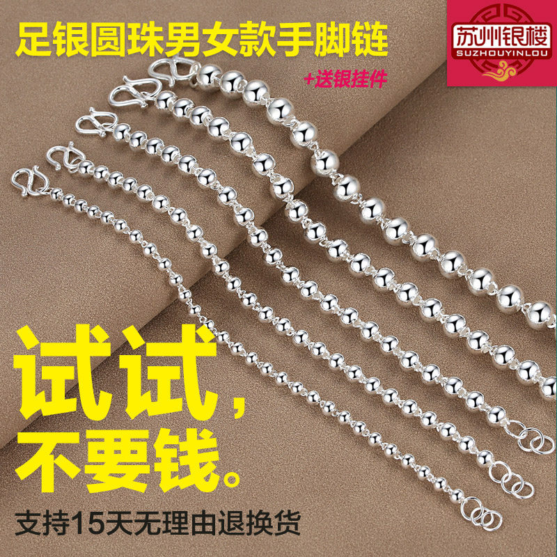 正品苏州银楼 银手链 999纯银女圆珠 银珠子手链大人宝宝2021脚链