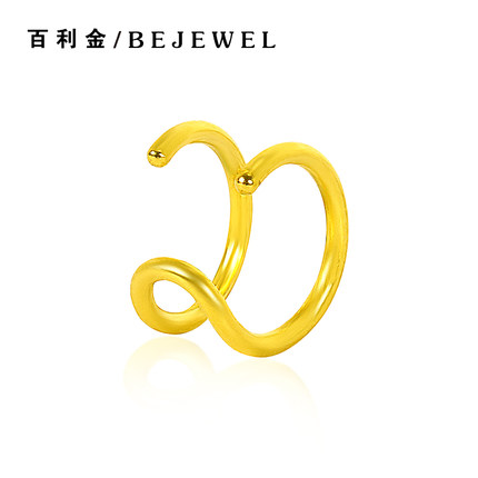 百利金珠宝黄金耳环耳夹无耳洞耳饰两层细耳圈耳骨999足金纯金女