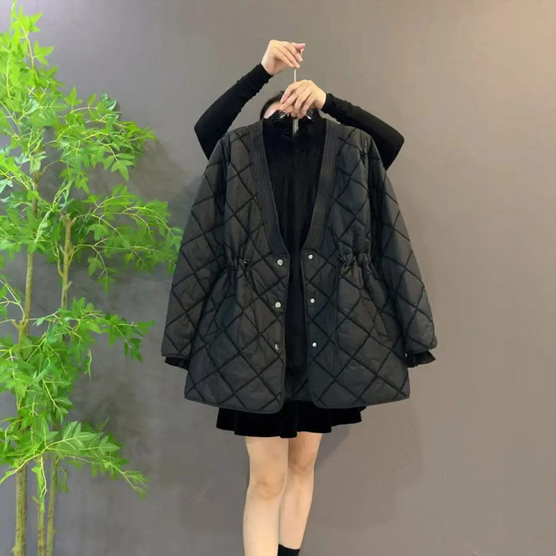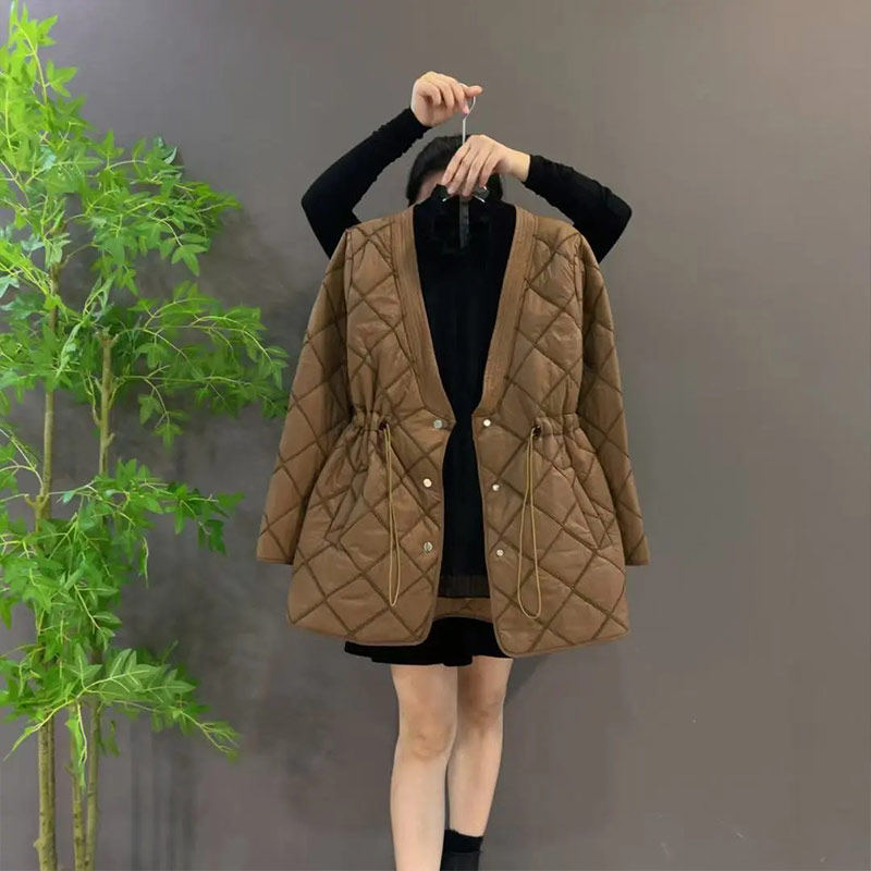 大码女装V领收腰棉服外套