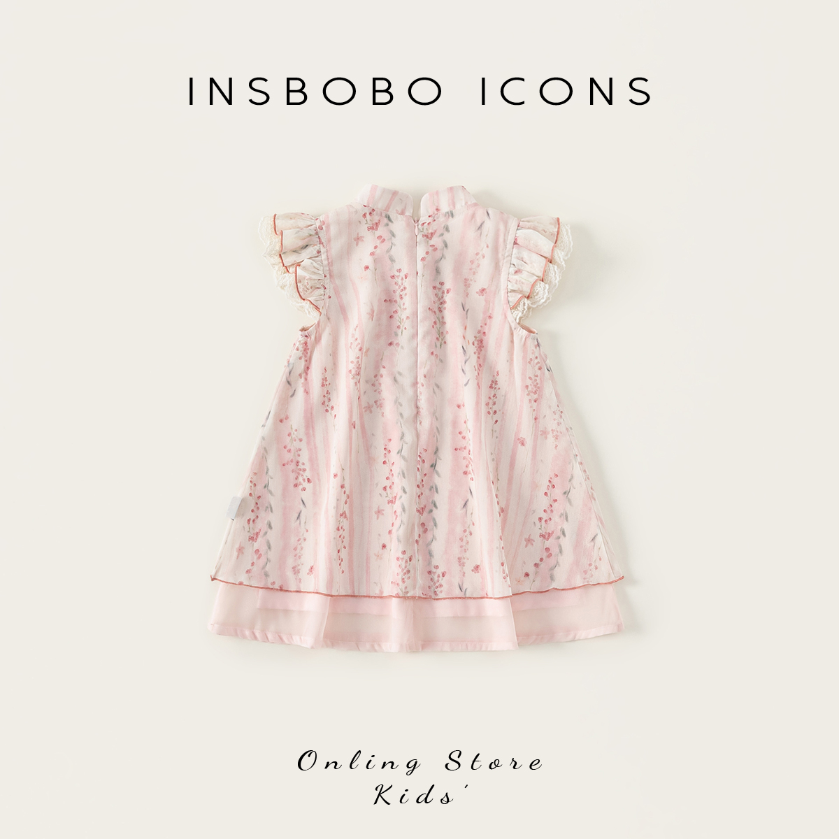 INSbobo儿童蕾丝边小飞袖连衣裙