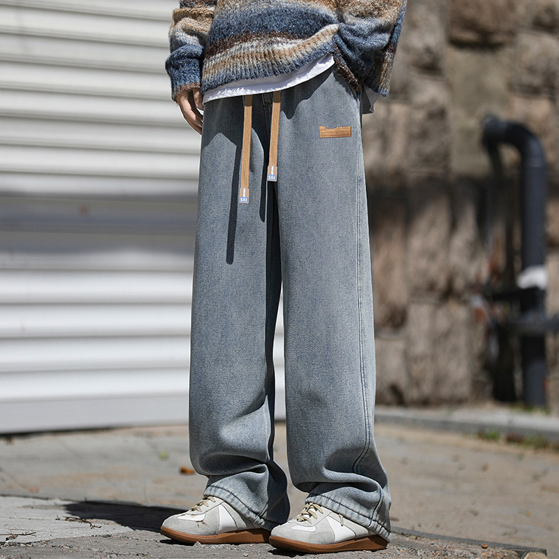 回力加绒牛仔裤男春秋冬季2025新款美式潮牌宽松直筒阔腿休闲长裤