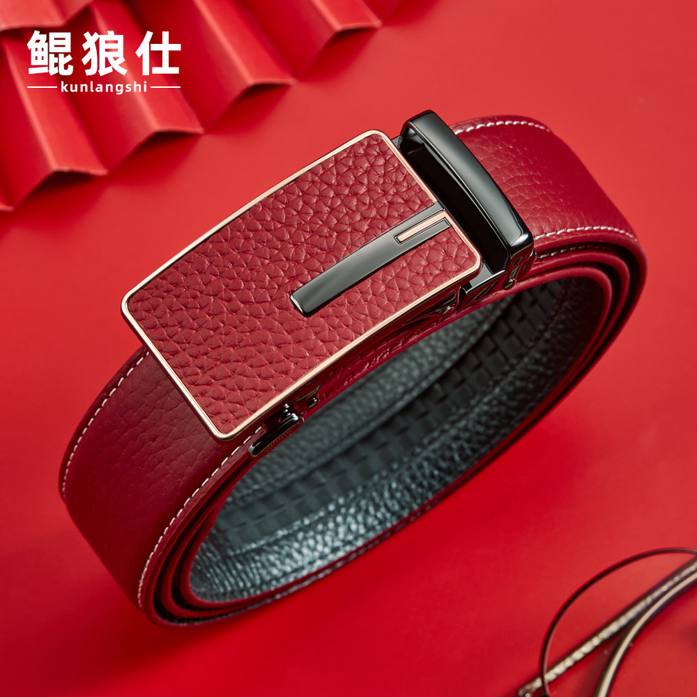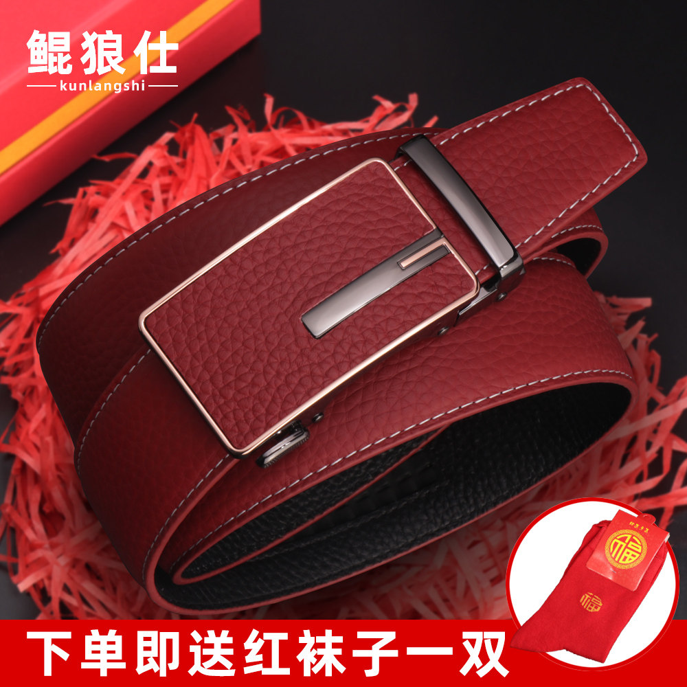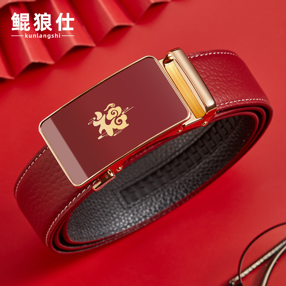 本命年红腰带属蛇年皮带男士真皮自动扣结婚礼盒头层牛皮休闲2025