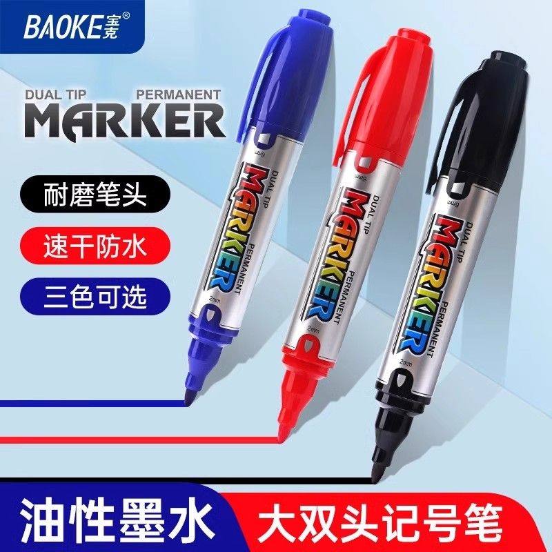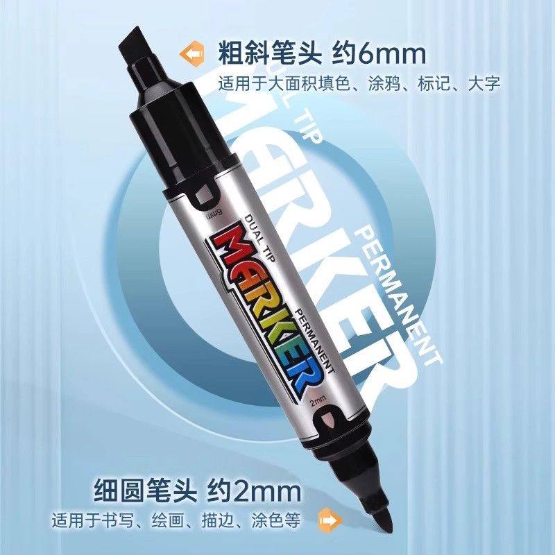 油性记号笔黑色防水防油不掉色双头油性工地大头笔办公马克笔瓦工