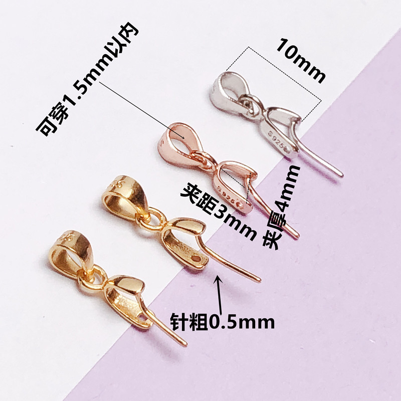 S925纯银项链扣接头连接扣夹扣斜孔翡翠玉扣瓜子扣小号金色玉佛扣