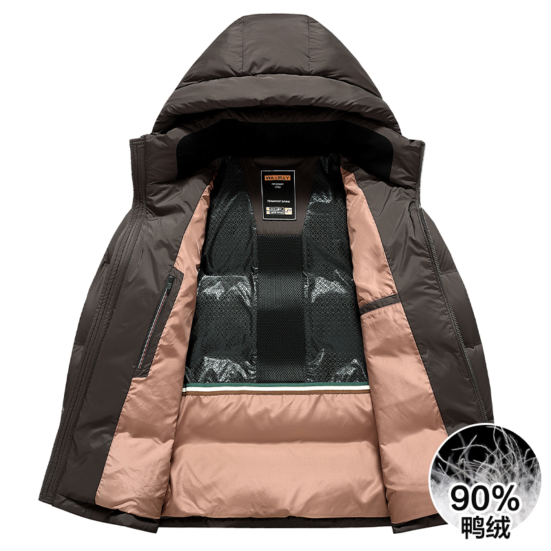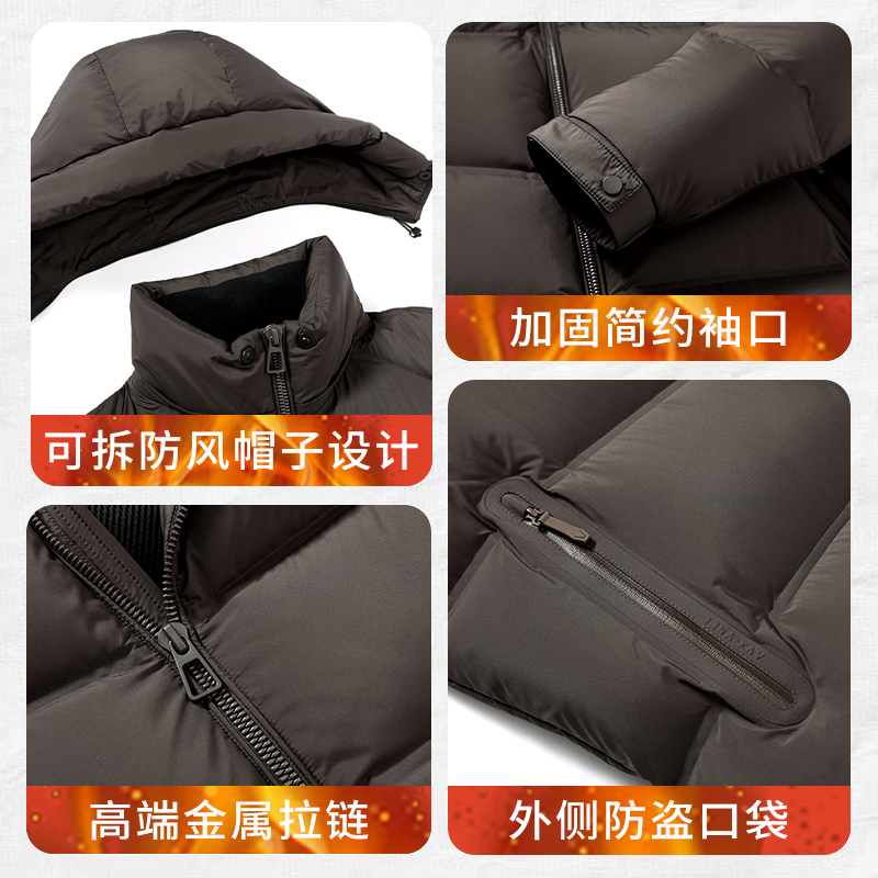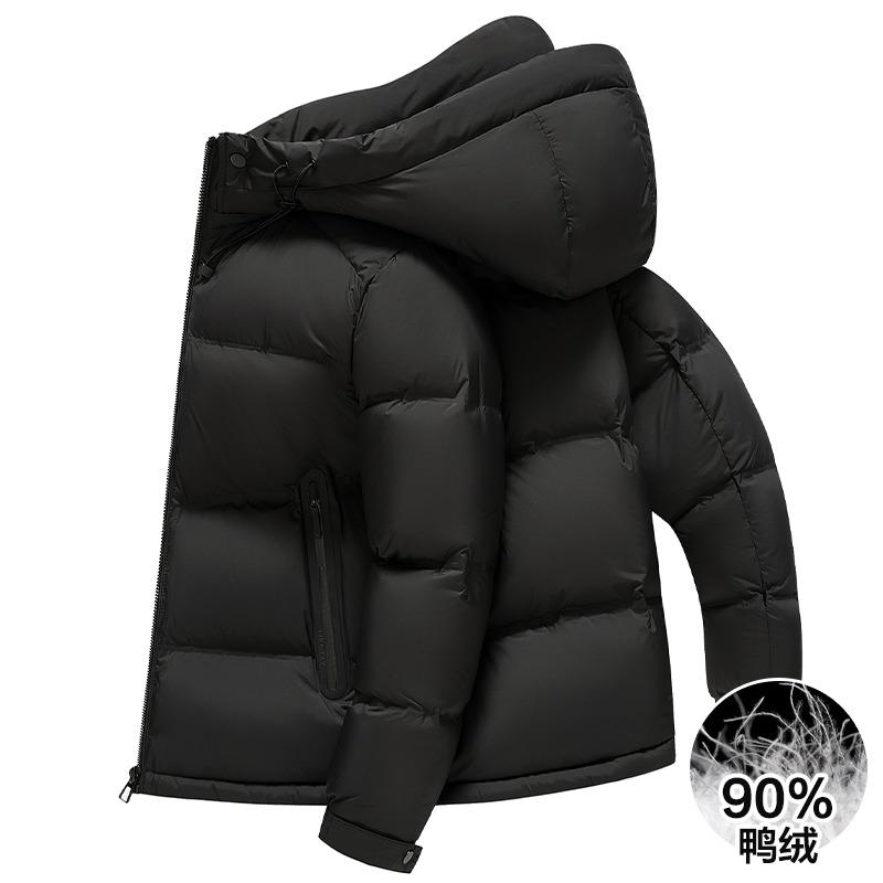 罗蒙男士羽绒服短款2025冬季新款加厚保暖连帽鸭绒面包服外套男装