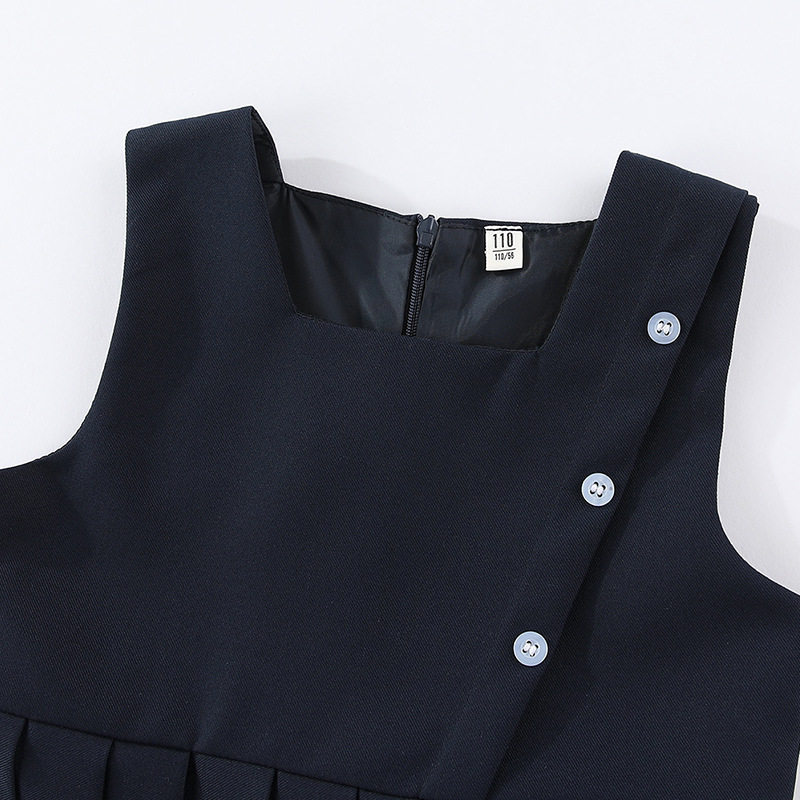 女童学院风连衣裙藏青女孩JK百褶裙中大童灰色演出裙子儿童背心裙