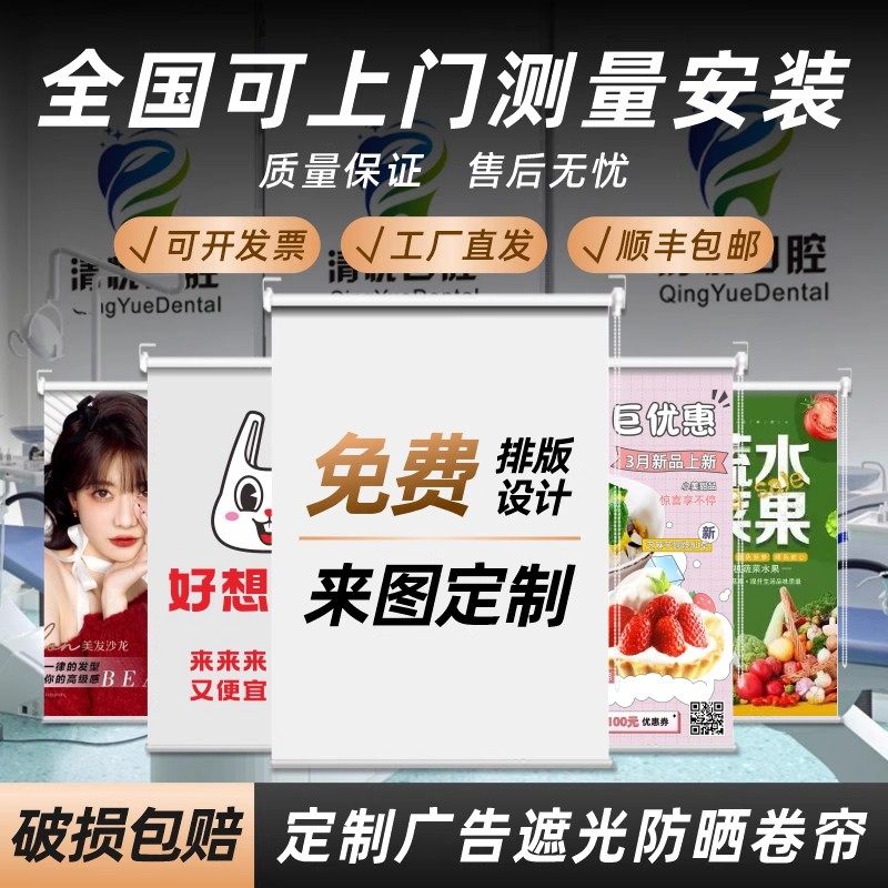 定制logo广告窗帘卷帘电动升降卷拉式遮光遮阳隔热防晒办公室银行
