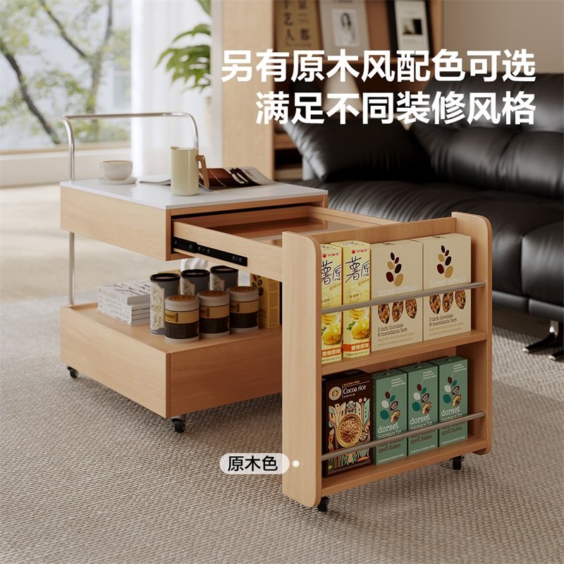 全友家居2025新款中古风多功能伸缩岩板茶几客厅家用可移动小茶桌