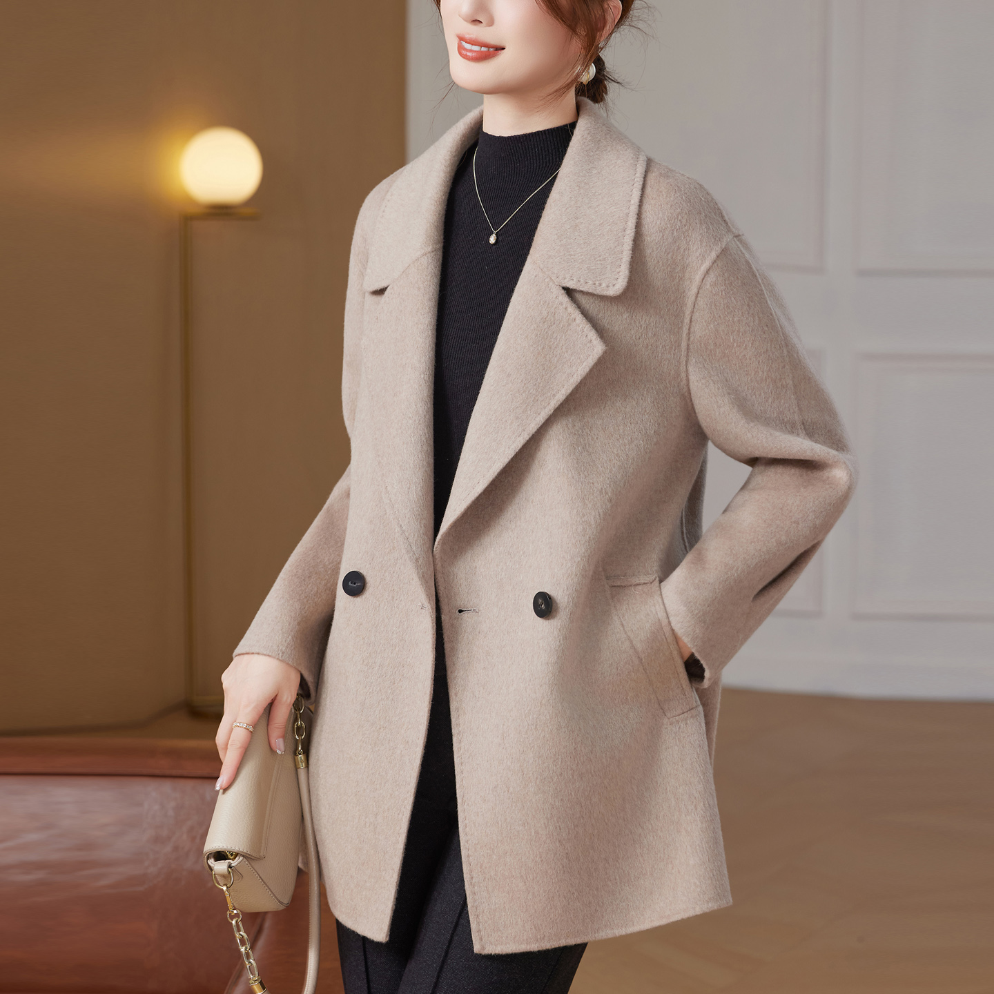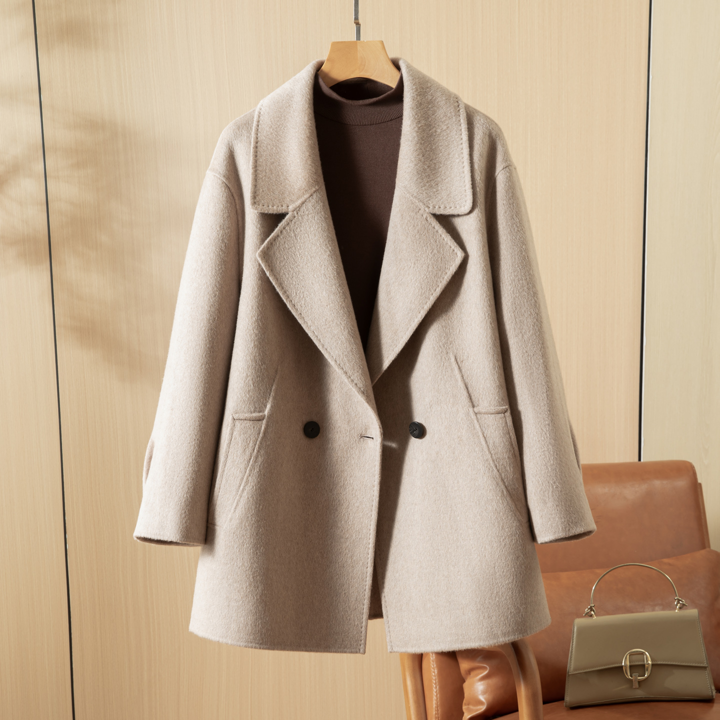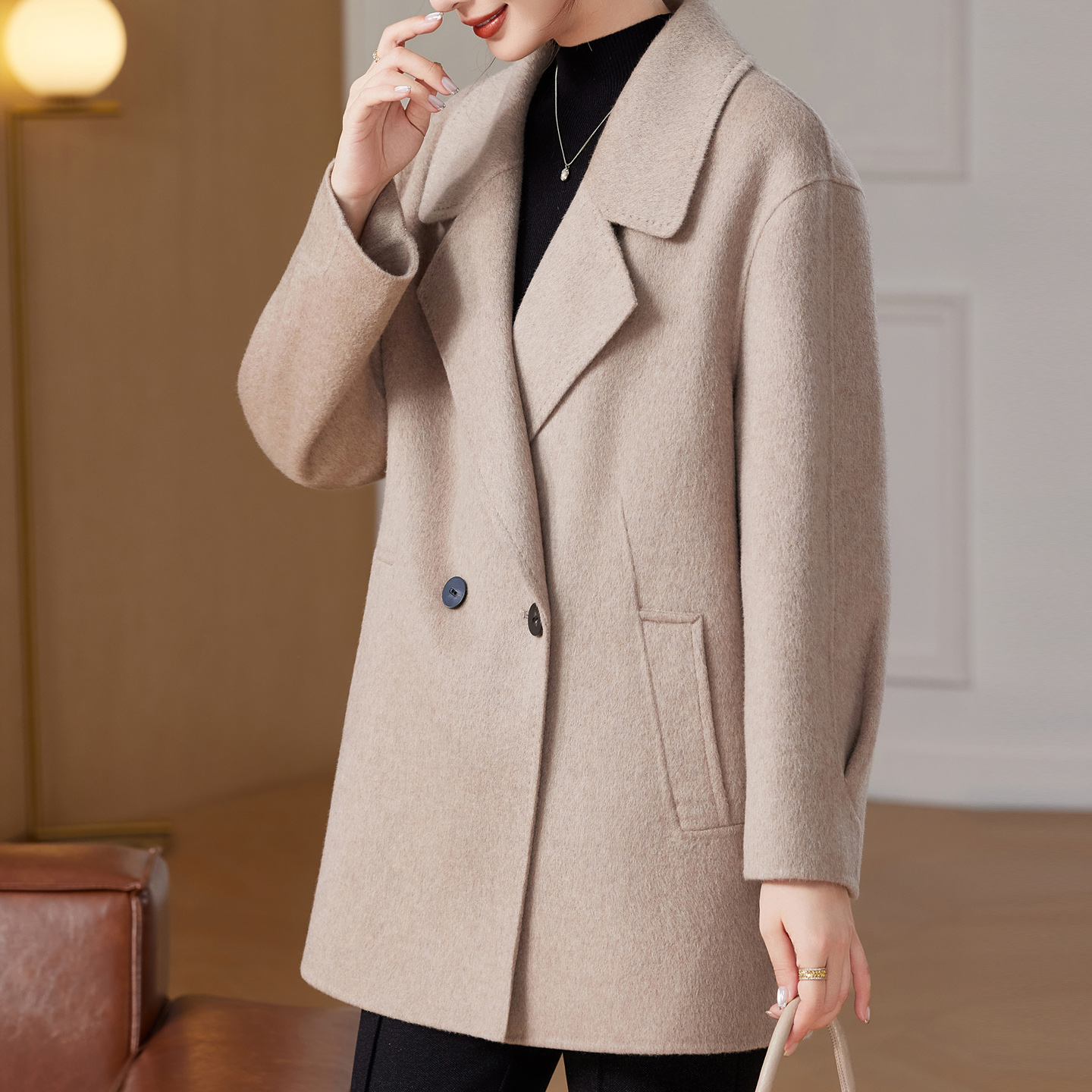 妈妈小个子双面羊绒大衣女中长款秋冬新款呢子双排扣西装羊毛外套