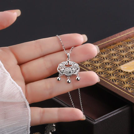 s999足银平安长命锁项链女纯银新中式国风锁骨链福字颈链儿童礼物