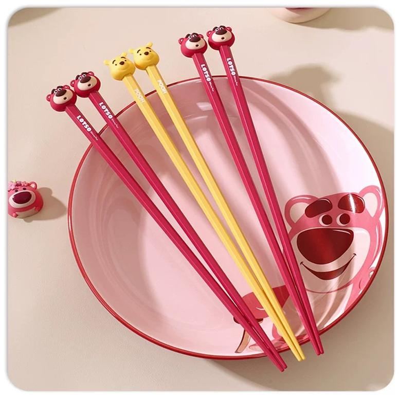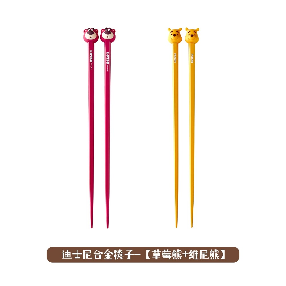 迪士尼正版家用可爱草莓熊维尼熊筷子餐具防摔防霉菌高档合金长筷