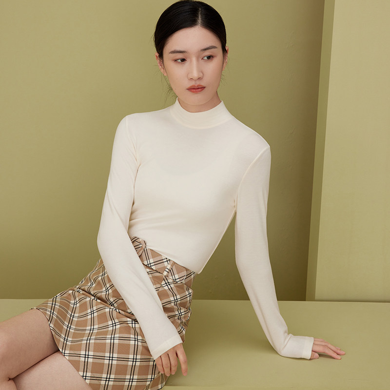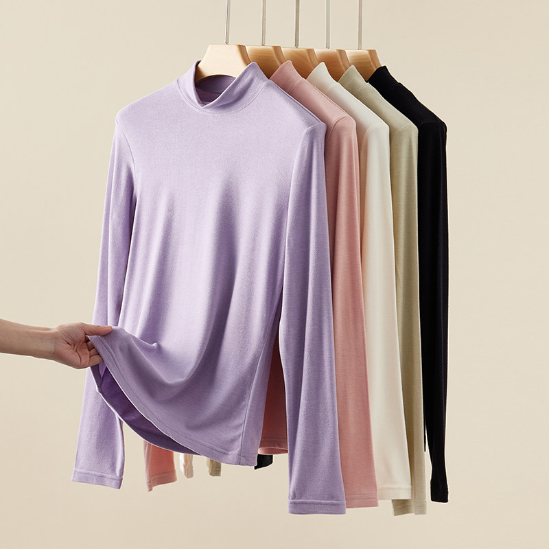 半高领打底衫女薄款磨毛保暖贴身秋衣德绒单件上衣长袖内搭秋冬季