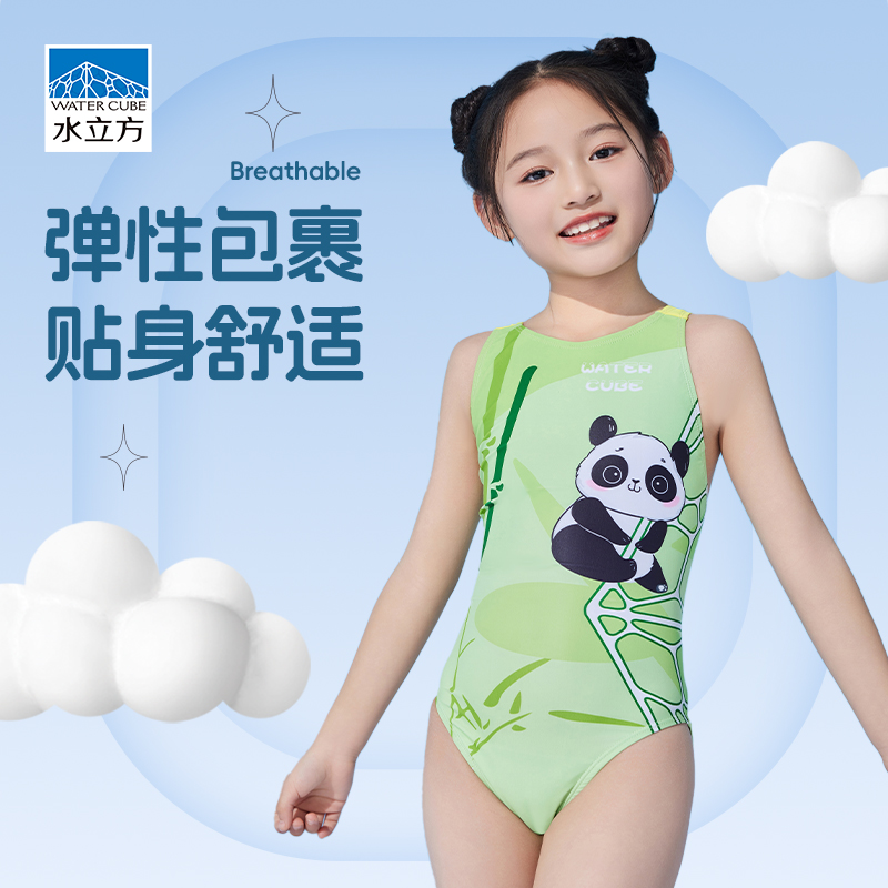水立方儿童连体三角泳衣女童专业训练竞速速干中大童比赛竞技泳装