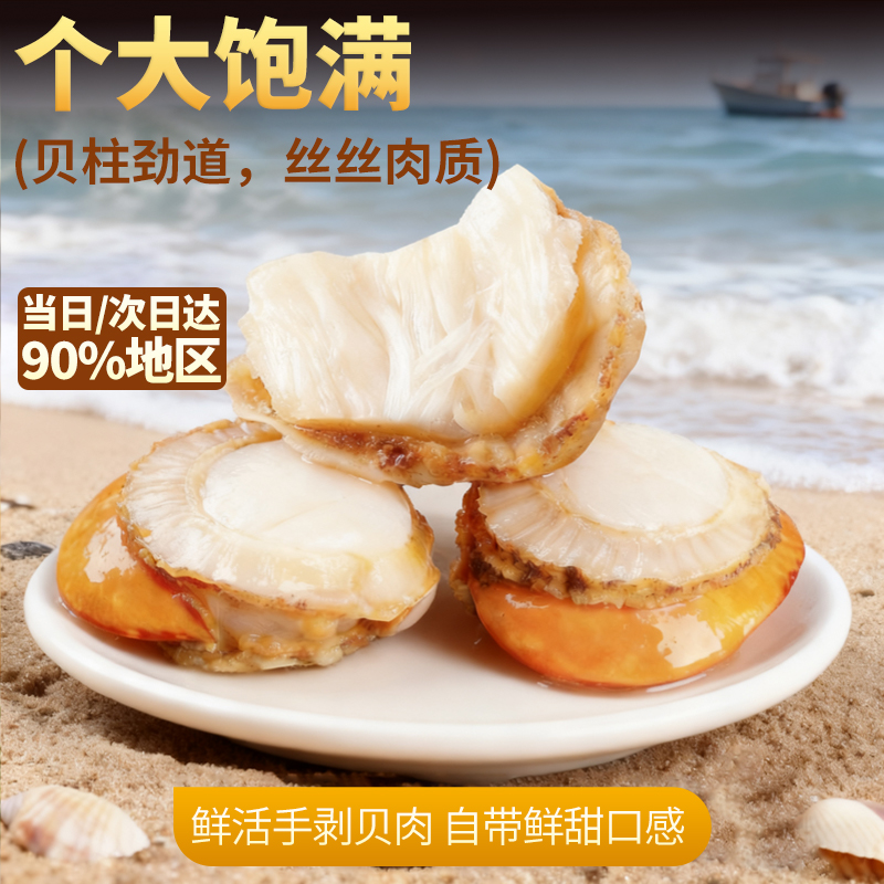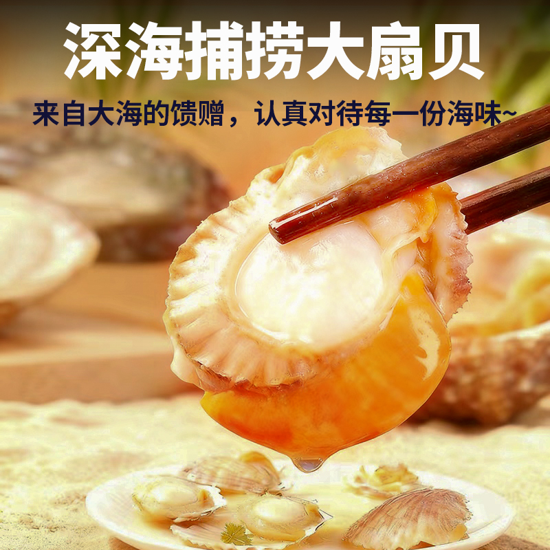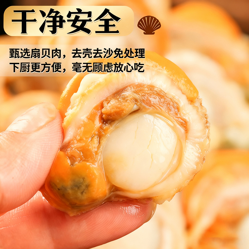 弹指鲜生扇贝肉 新鲜冷冻海鲜活特大号带黄去内脏 可做蒜蓉粉丝贝