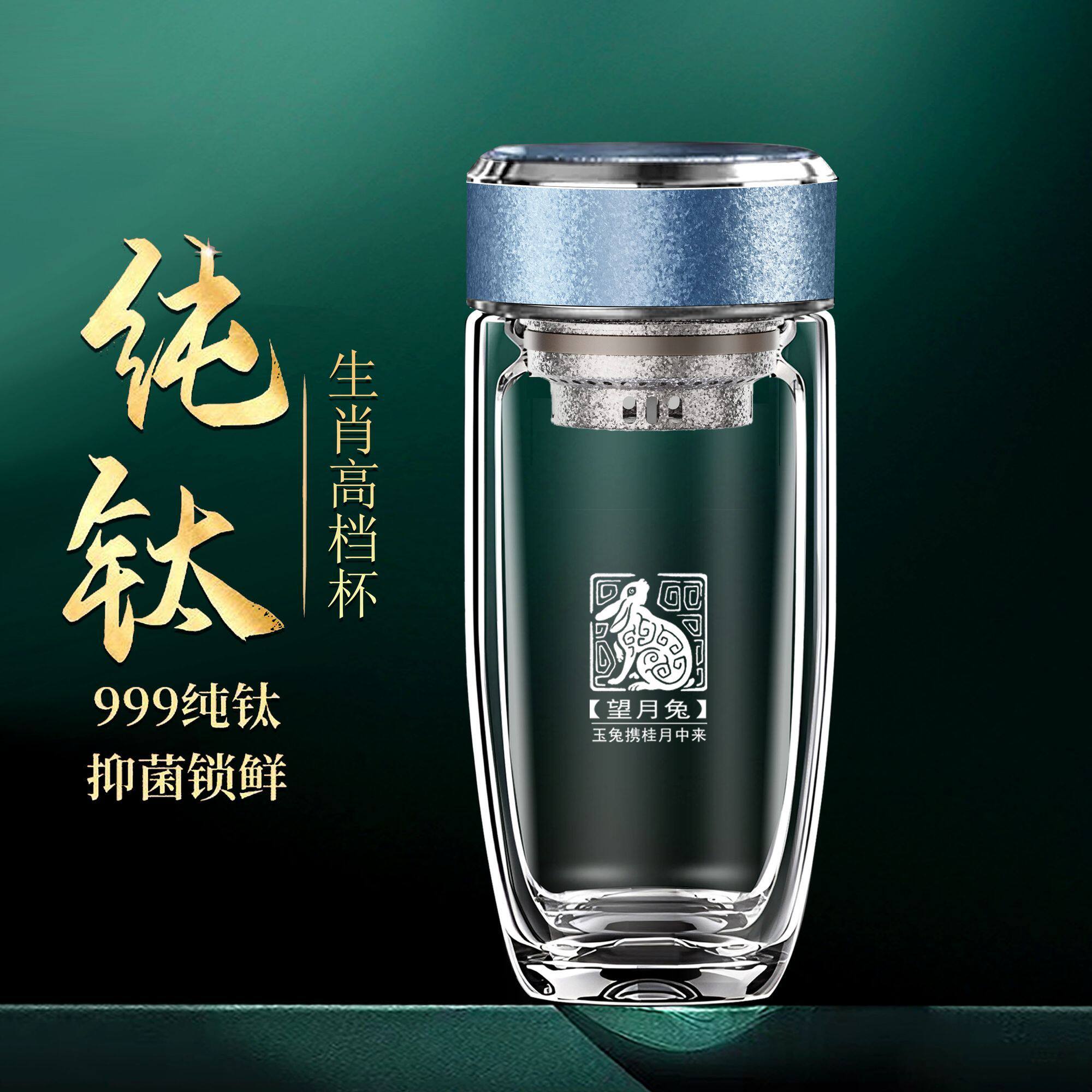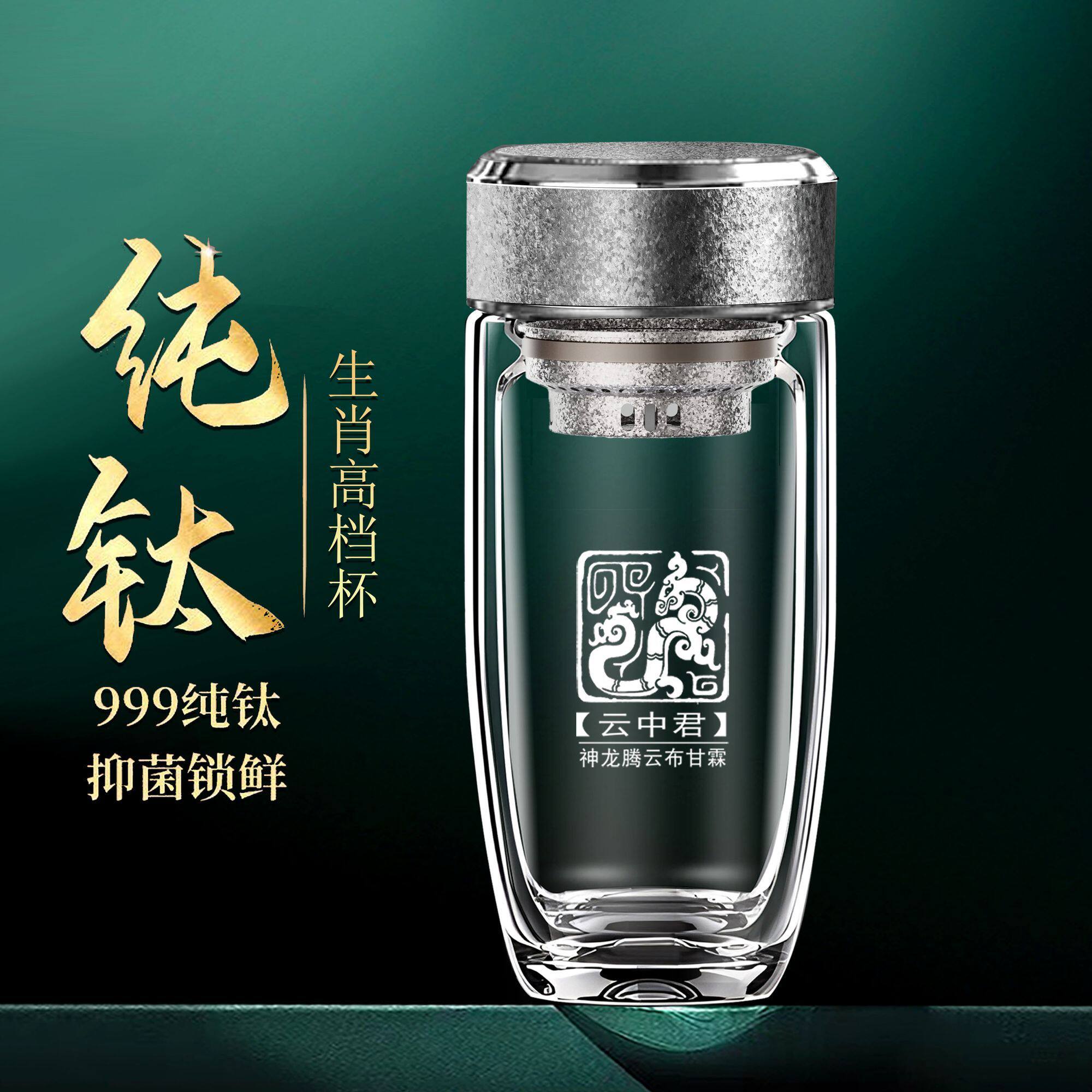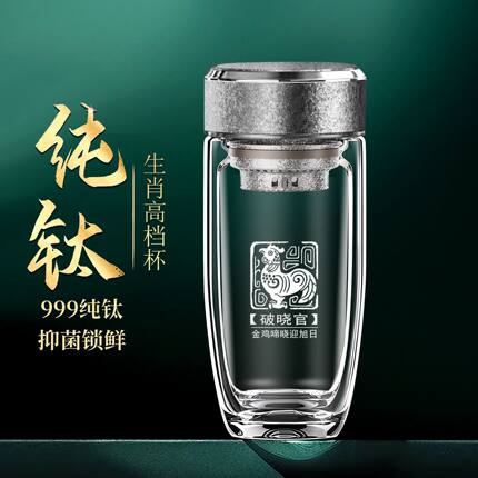 车载纯钛杯高档玻璃杯双层鹅蛋高颜值水杯男士定制泡茶杯大容量
