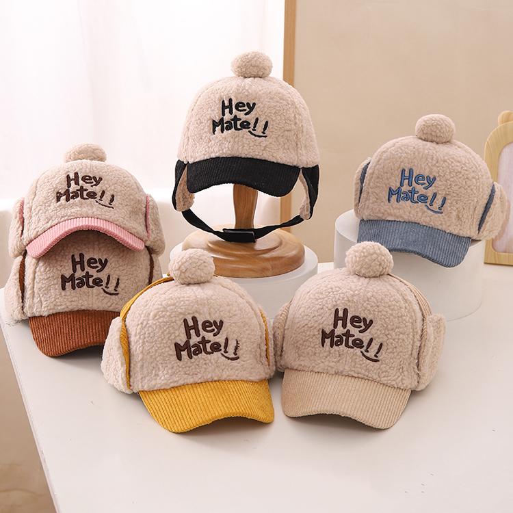 韩版宝宝帽子秋冬季保暖毛绒女童拼接鸭舌帽男童护耳儿童雷锋帽潮