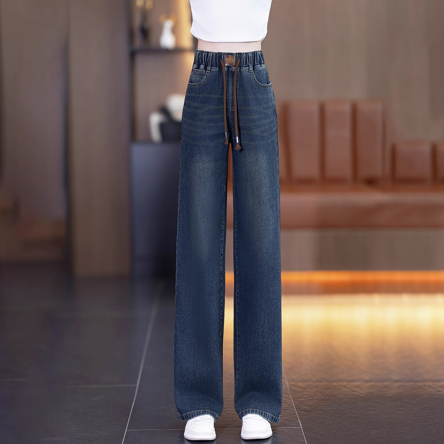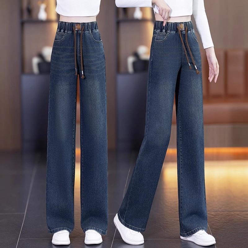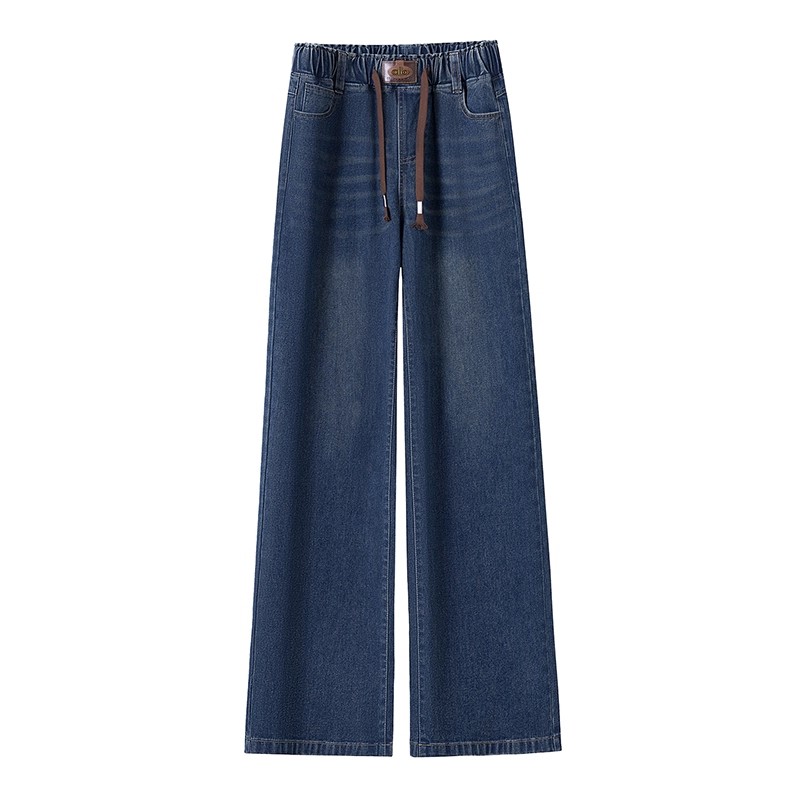 松紧腰直筒牛仔裤女春秋2025年新款高腰大码宽松胖mm弹力阔腿裤子