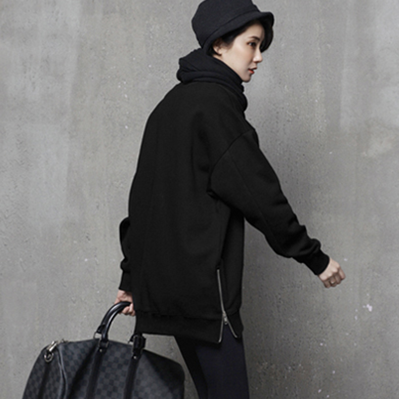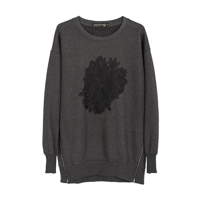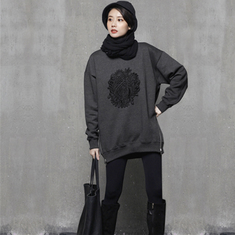 刺绣宽松加绒中长款中年女士卫衣