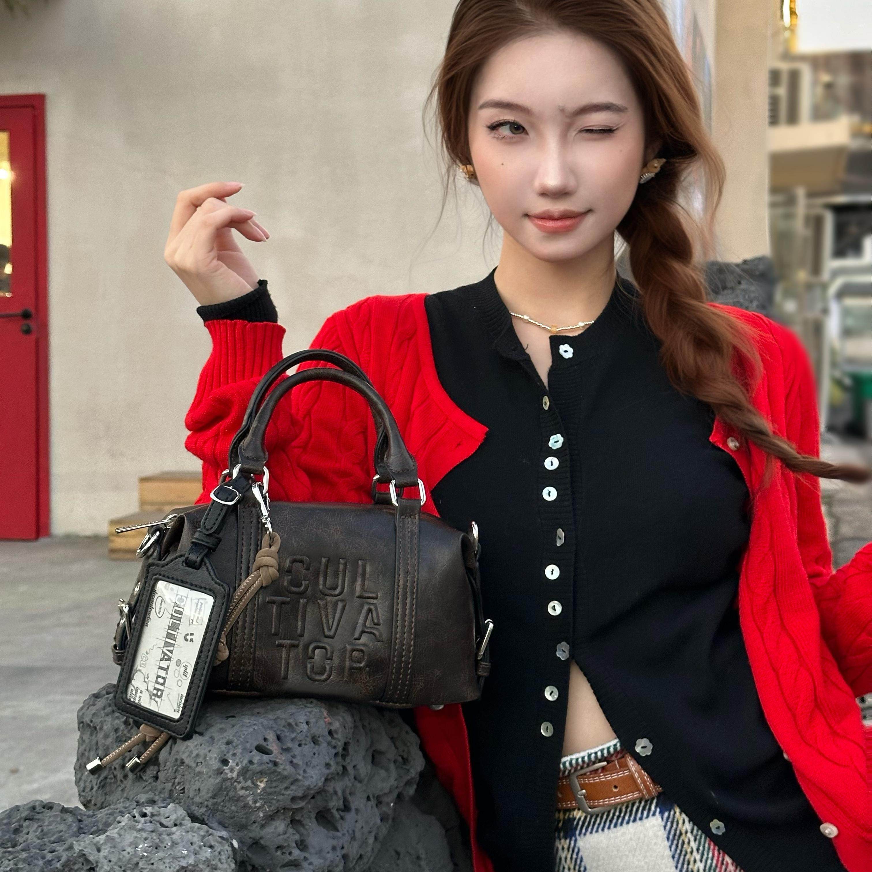 Cultivator原创小众复古百搭美拉德卡套斜挎波士顿枕头包2024冬新