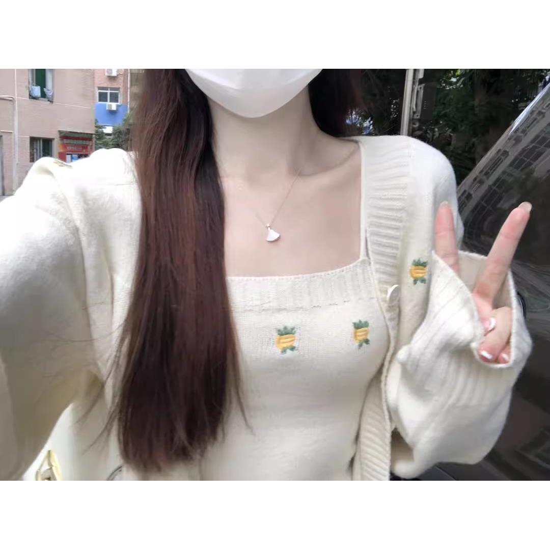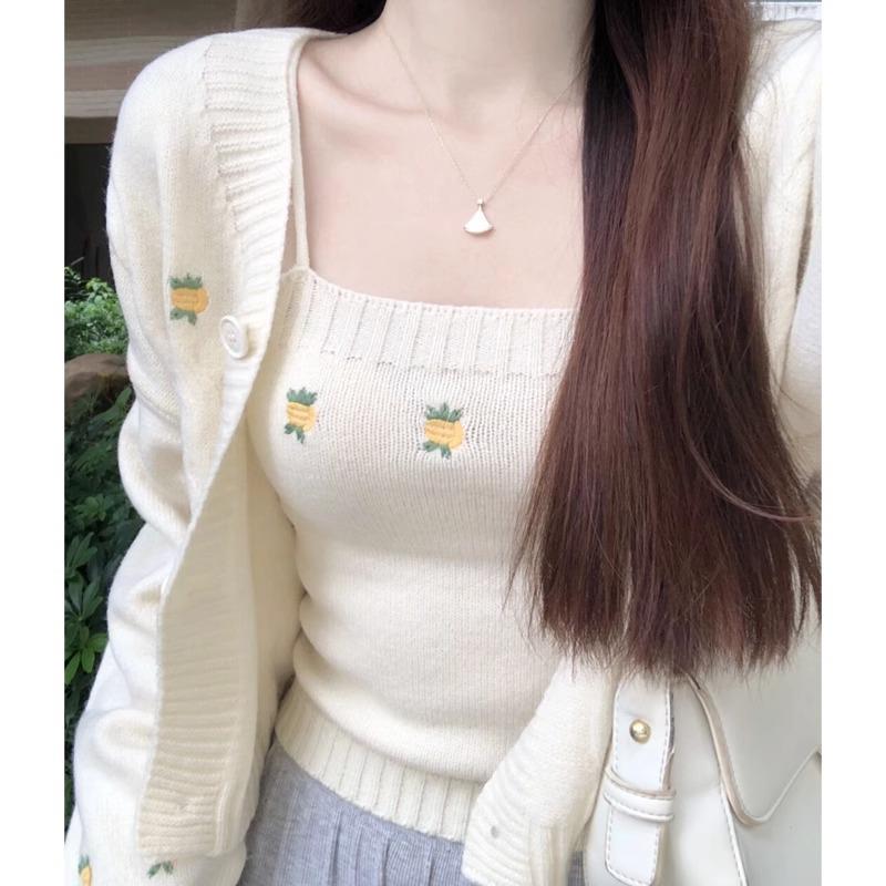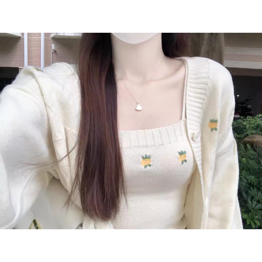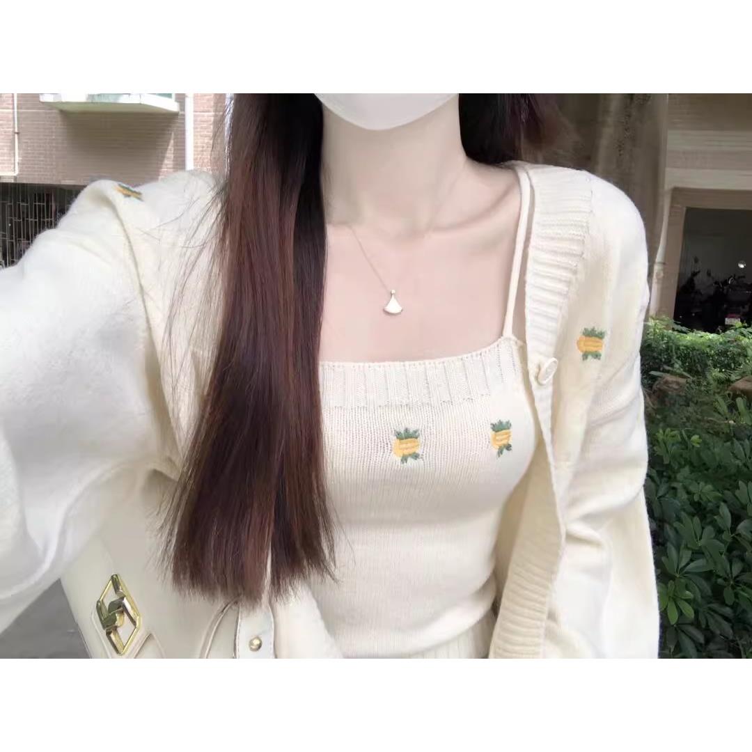 温柔风防晒针织衫女春秋季韩系奶甜短款开衫内搭吊带小背心两件套