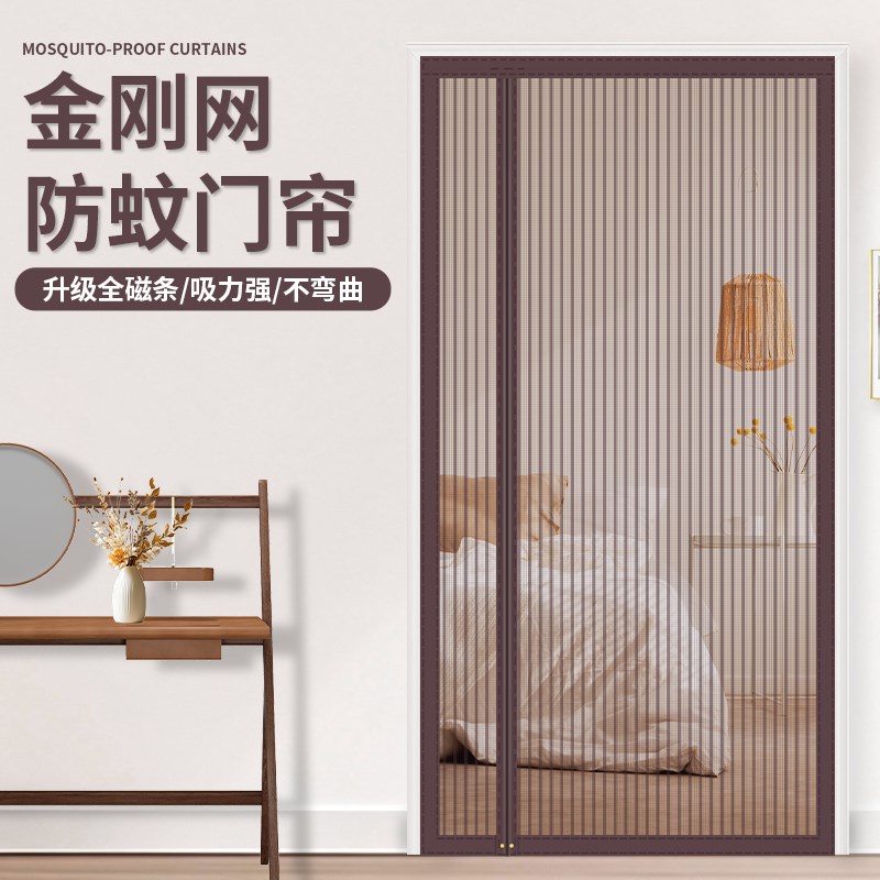 新款高档侧开纯色金刚网防蚊门帘磁性家用磁吸条强V力纱门新型防