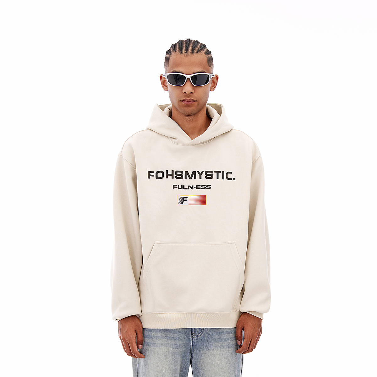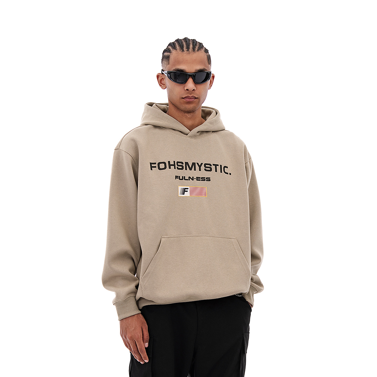 FOH 秋季新款潮牌450g重磅渐变字母连帽加绒卫衣男宽松休闲帽衫