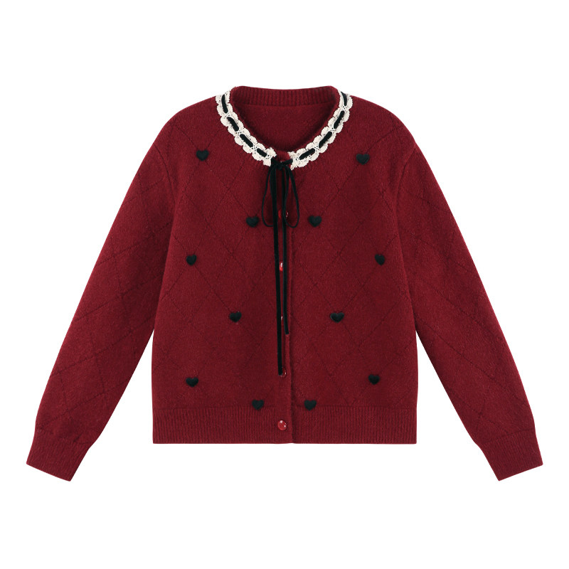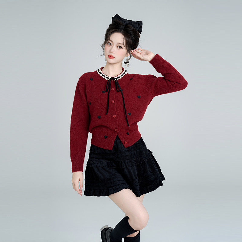 甜美法式小个子开衫红色毛衣女冬季高级感小香风气质短款针织上衣