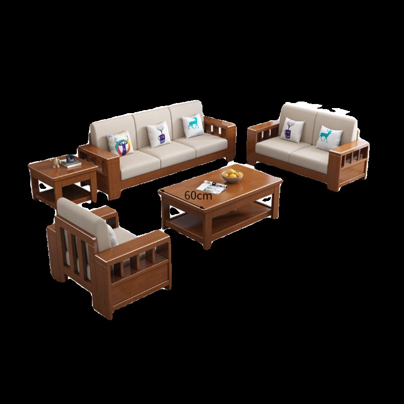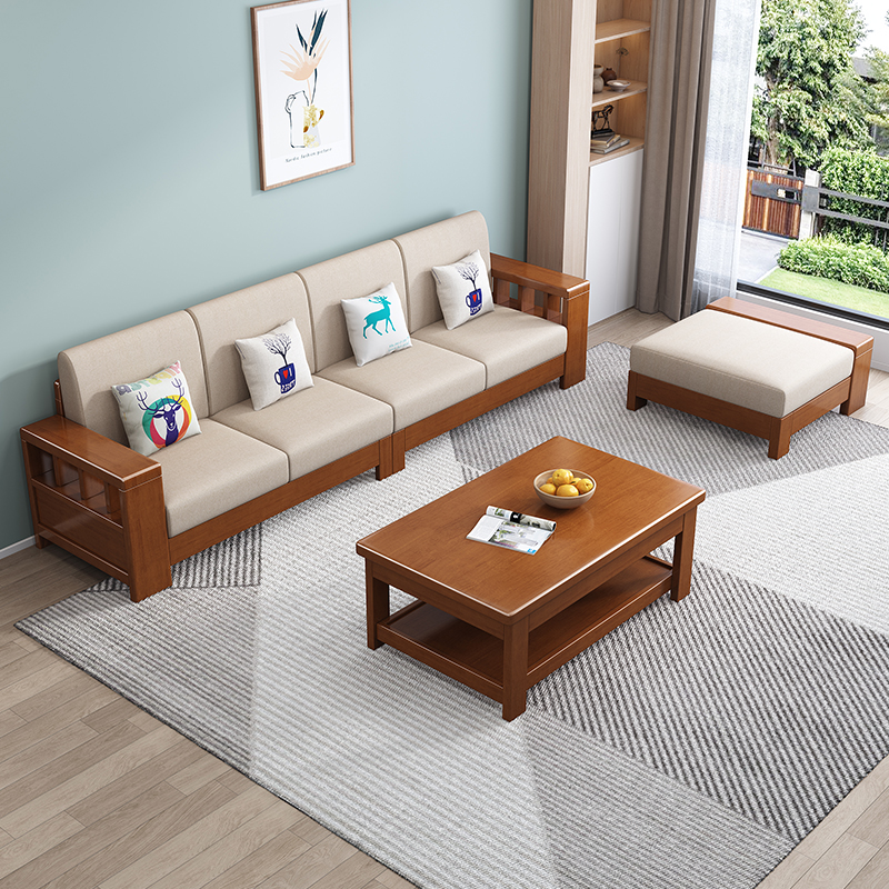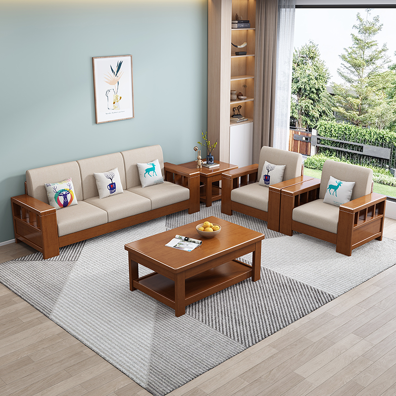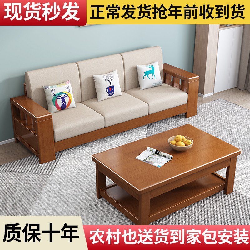 中式实木沙发组合现代简约新款小户型客厅经济木质布艺三人位沙发