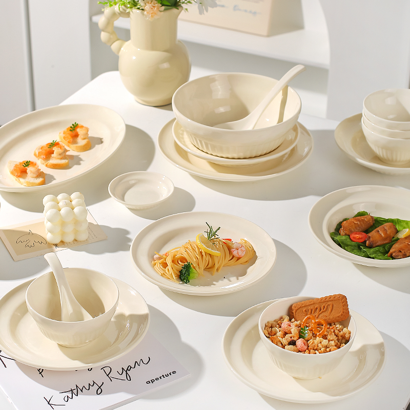 川岛屋法式奶油风餐具碗碟套装家用2025新款高级感碗盘筷碗具套装