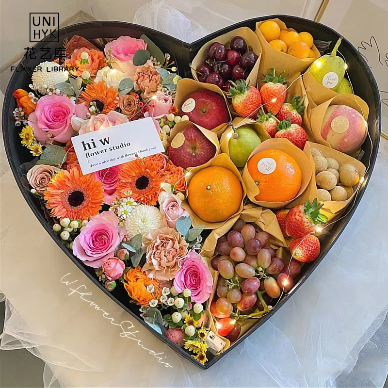 情人节鲜花礼盒圆形水果花盒大号爱心空盒子带盖心形有钱花心型盒