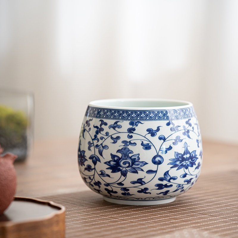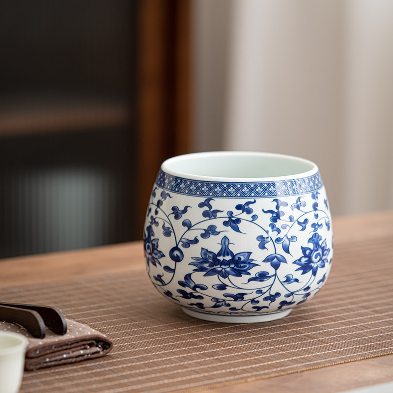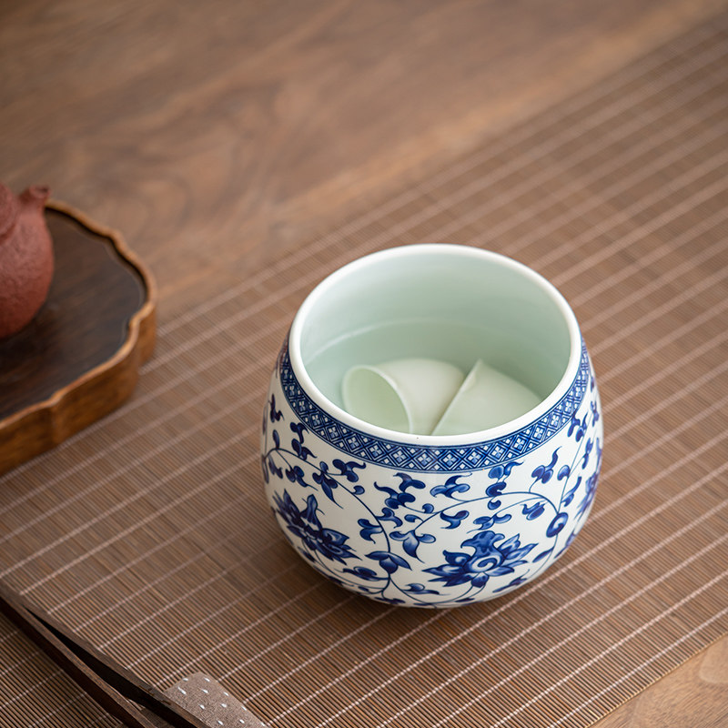 高端青花瓷茶洗茶渣缸陶瓷建水水盂废水桶烟灰缸茶具配件茶水缸