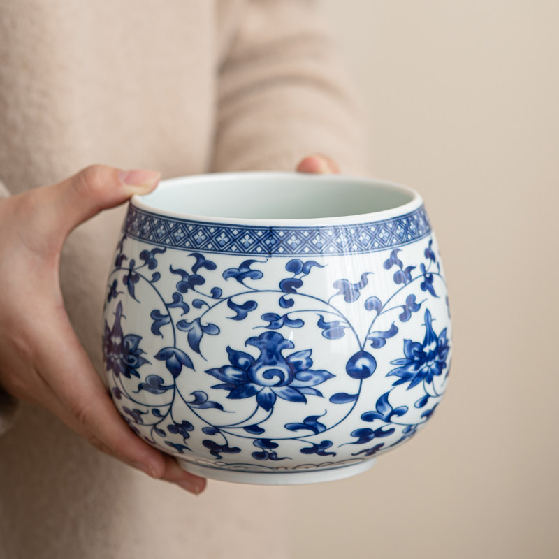 青花瓷茶洗茶渣缸建水水盂茶水缸
