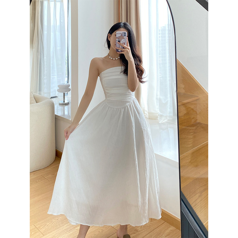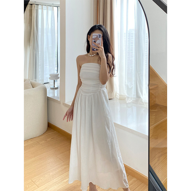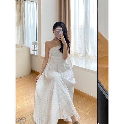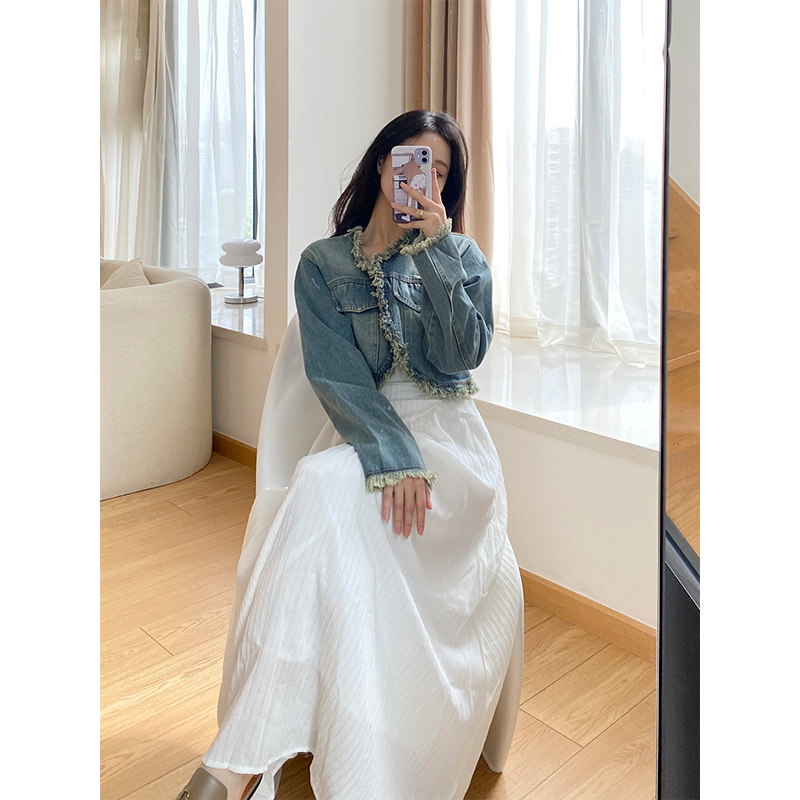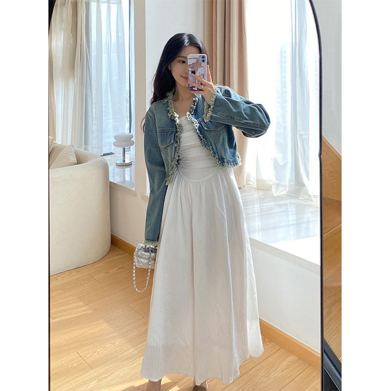 白色抹胸连衣裙牛仔两件套夏女微胖新款田曦薇同款百搭小外套H