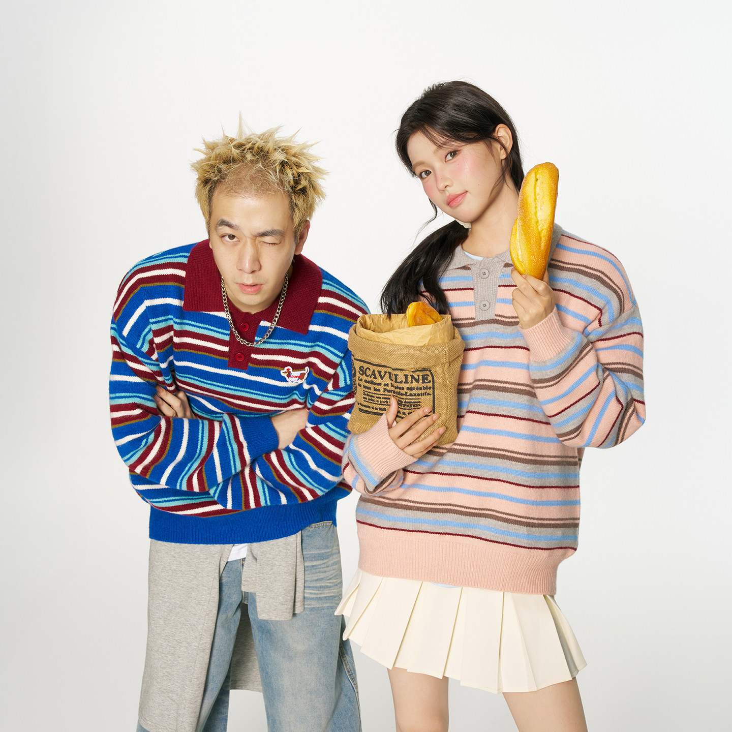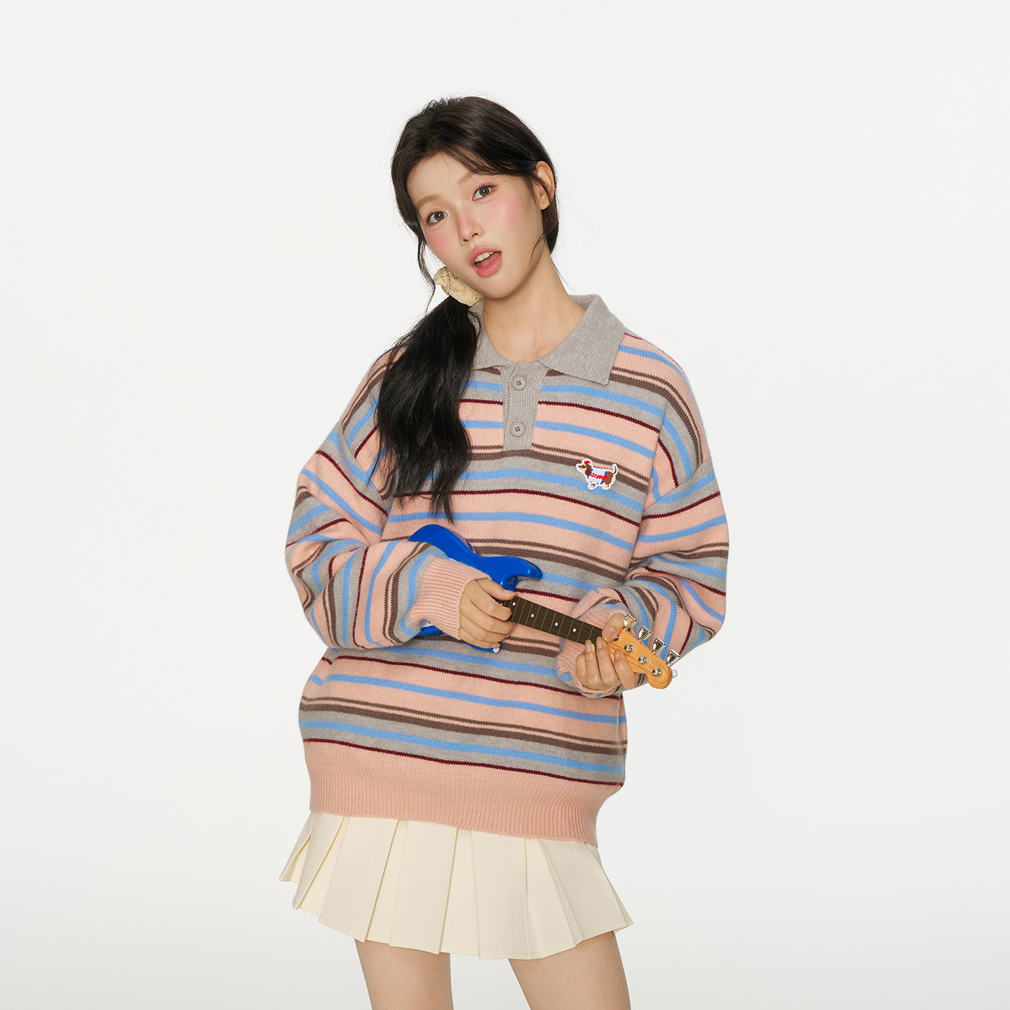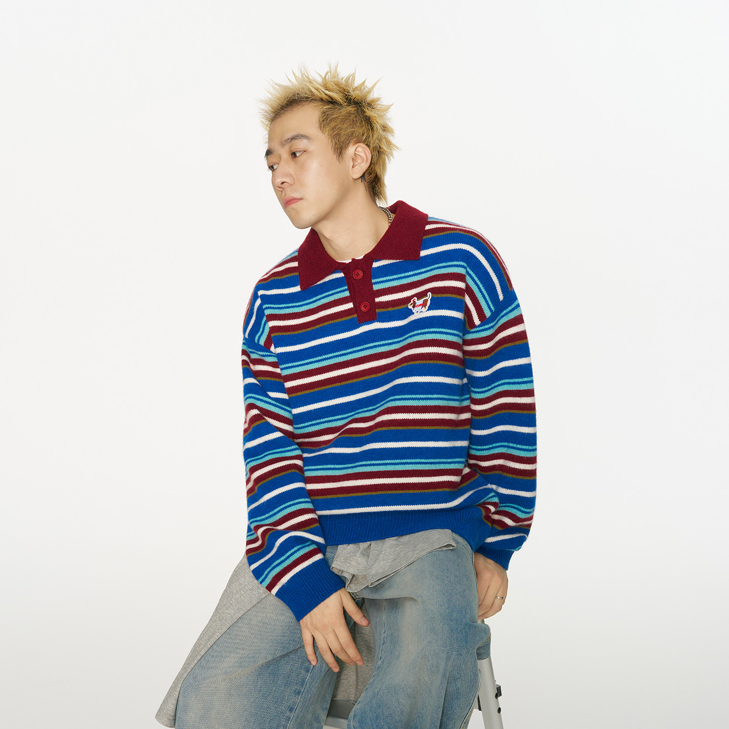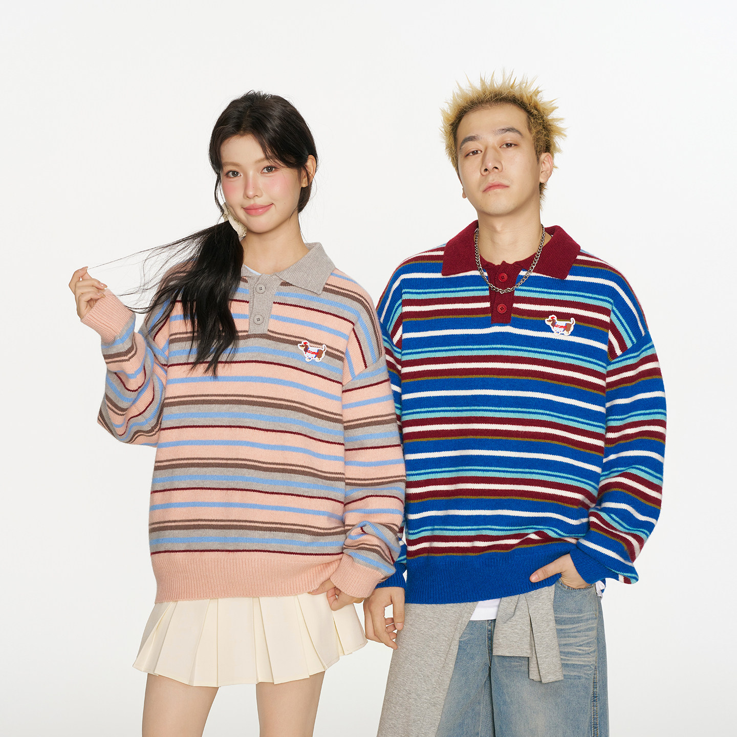 lemanism美式腊肠小狗条纹撞色翻领卫衣男款POLO衫潮牌秋季上衣女