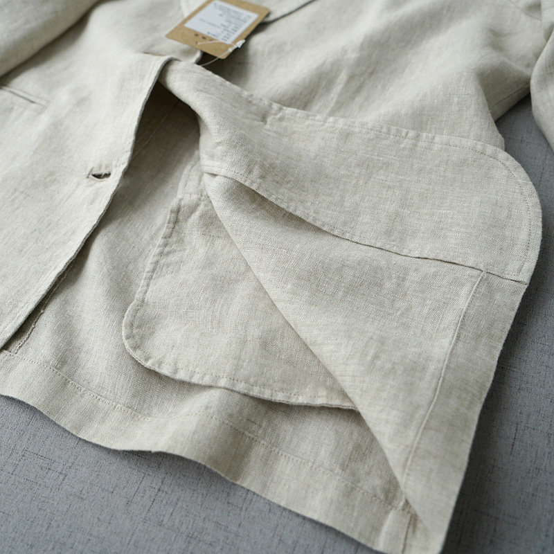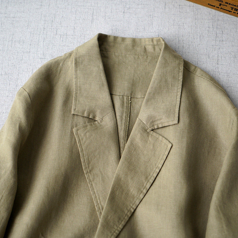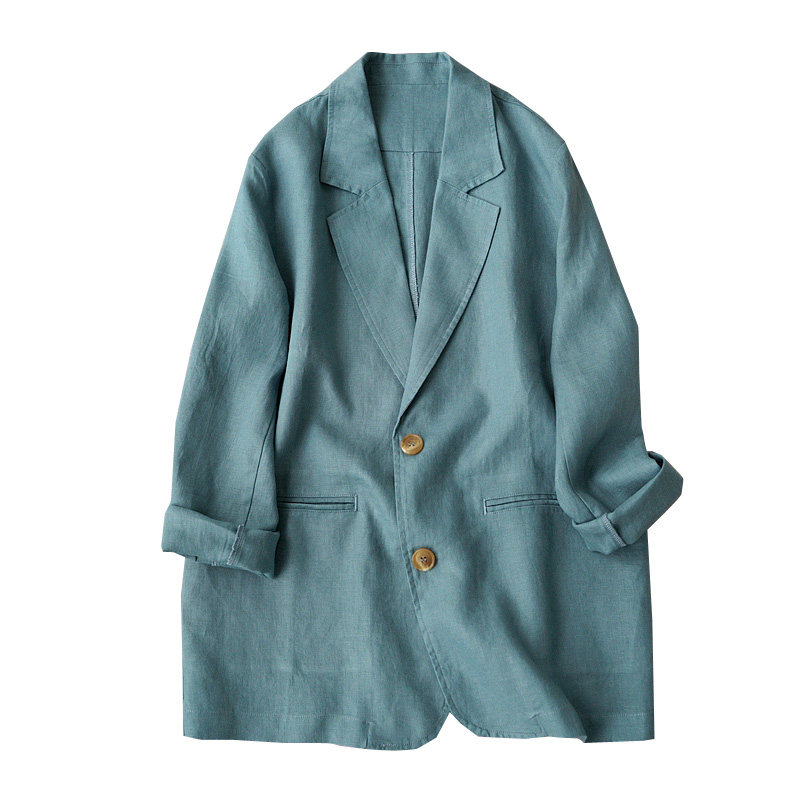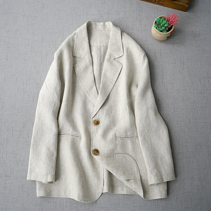 特女士西服亚麻气质长袖西装薄外套2024新品春季女装休闲通勤外搭