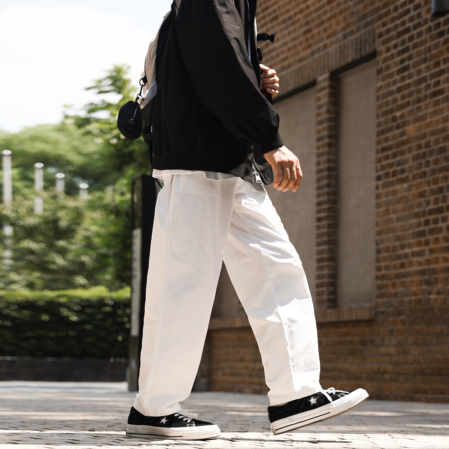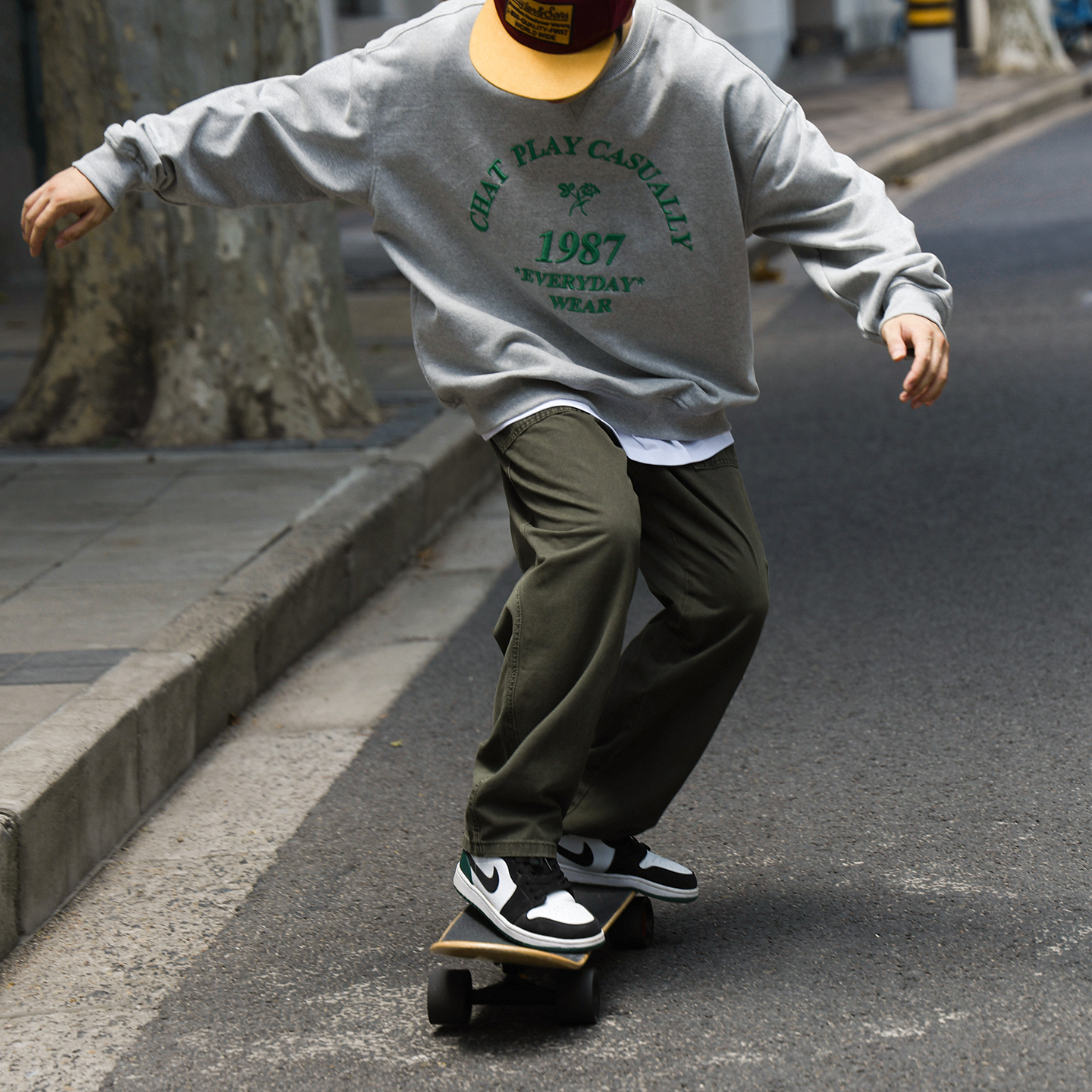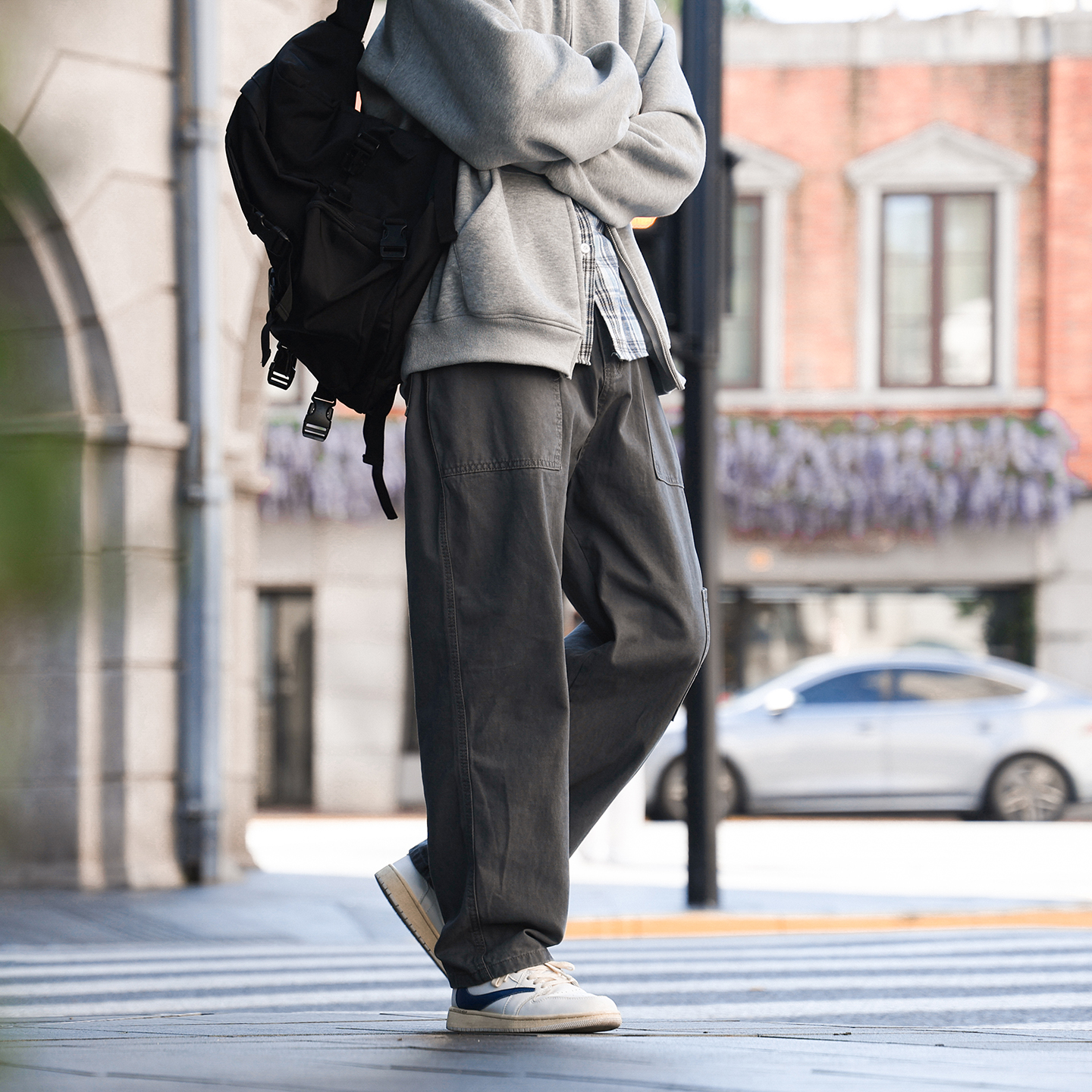 @港仔文艺男 军绿色直筒休闲裤男秋冬日系户外青少年百搭工装裤子