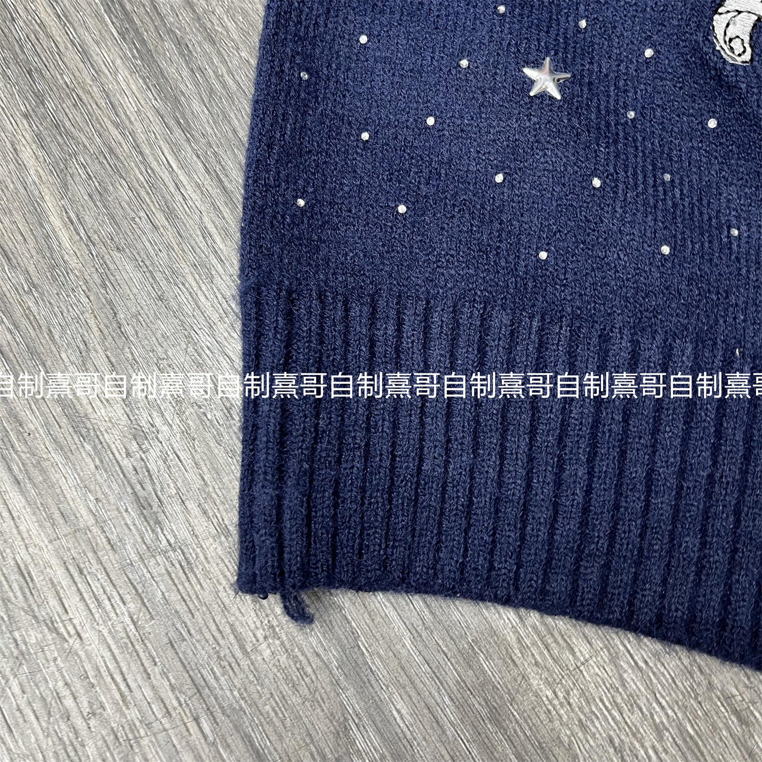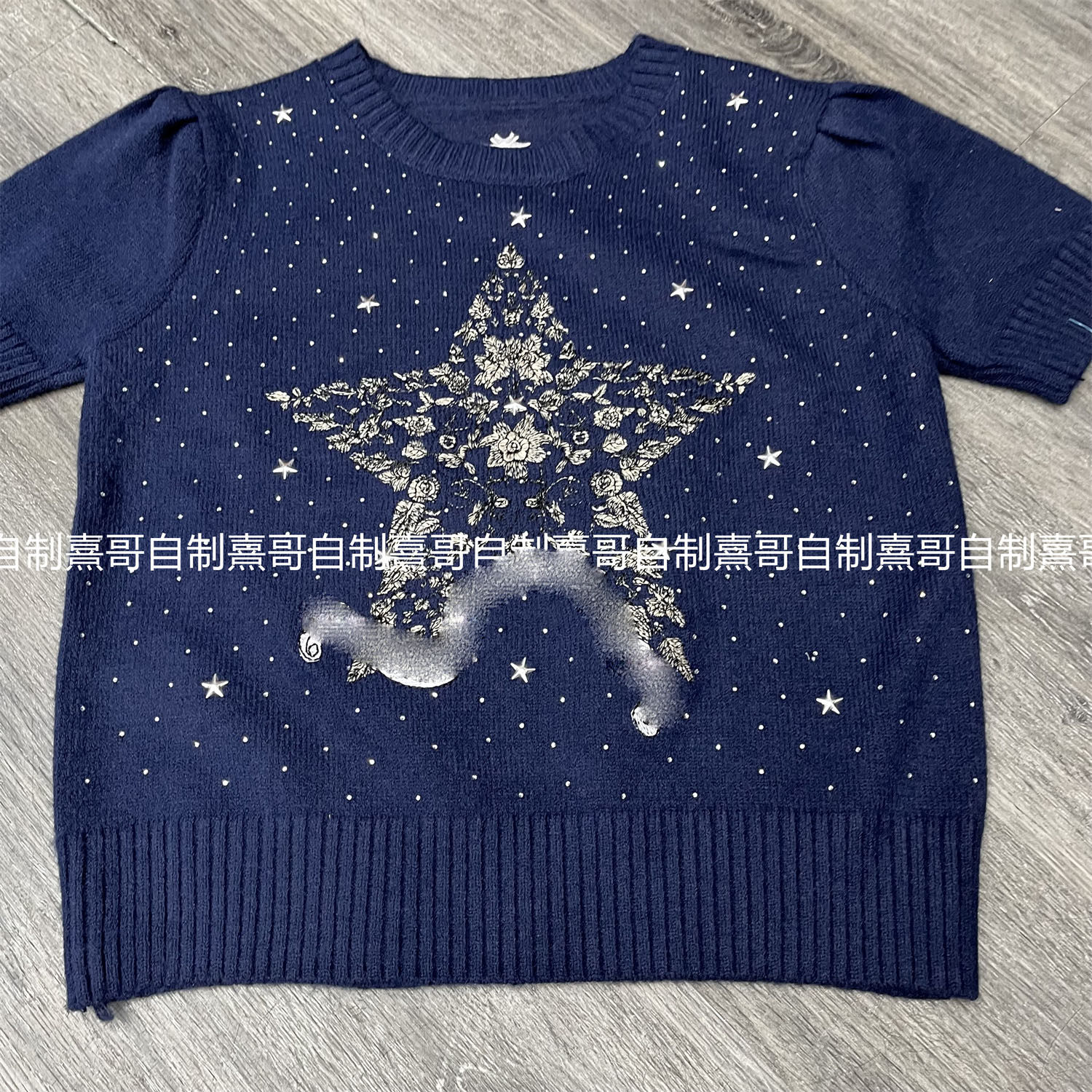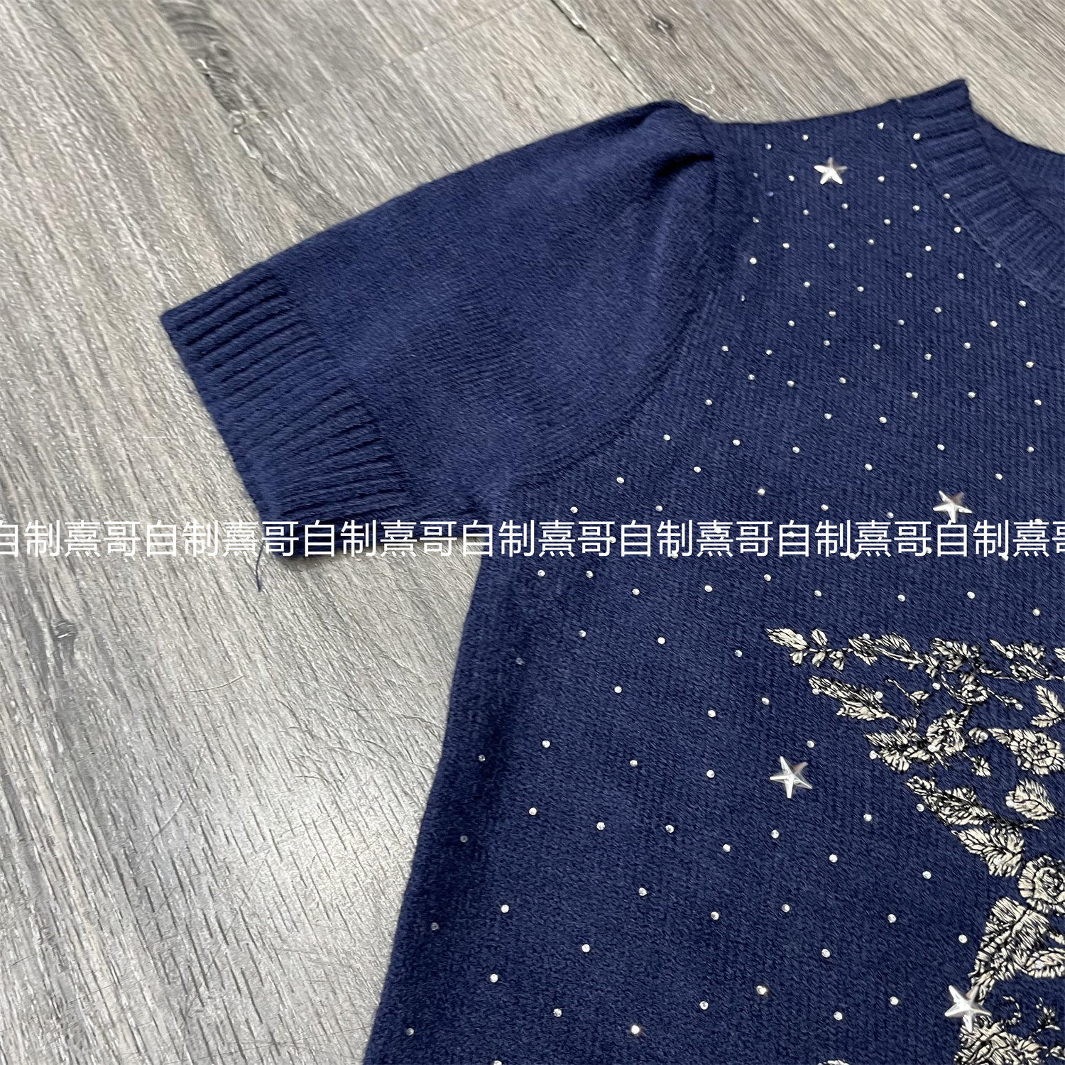 纯色针织衫女短款秋季设计感刺绣圆领修身气质短袖上衣时尚百搭潮