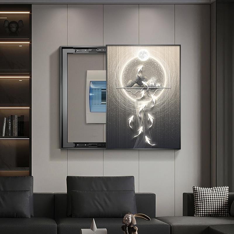 高级感竖款配电表箱装饰画2022新款九鱼图轻奢高档电闸盒遮挡挂画