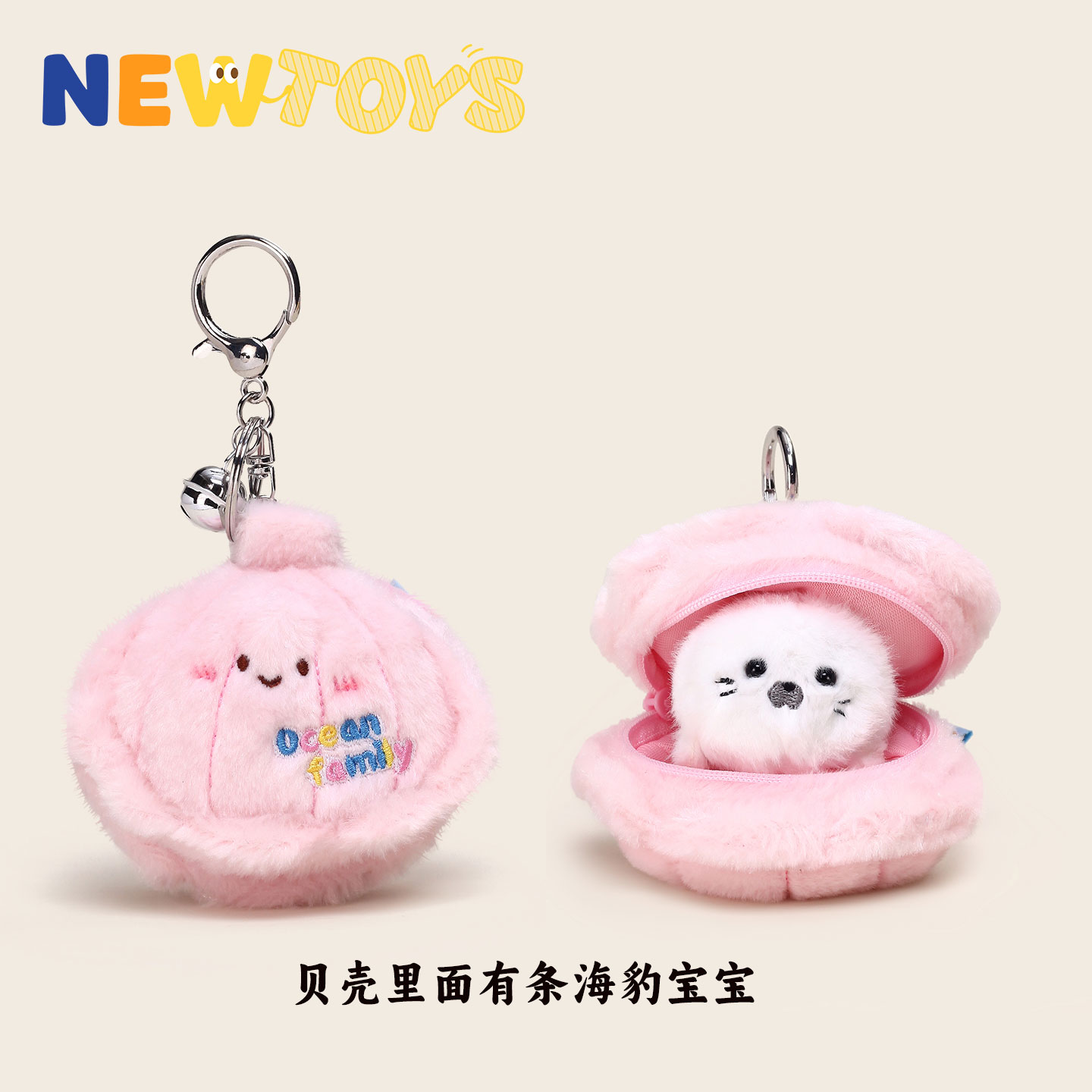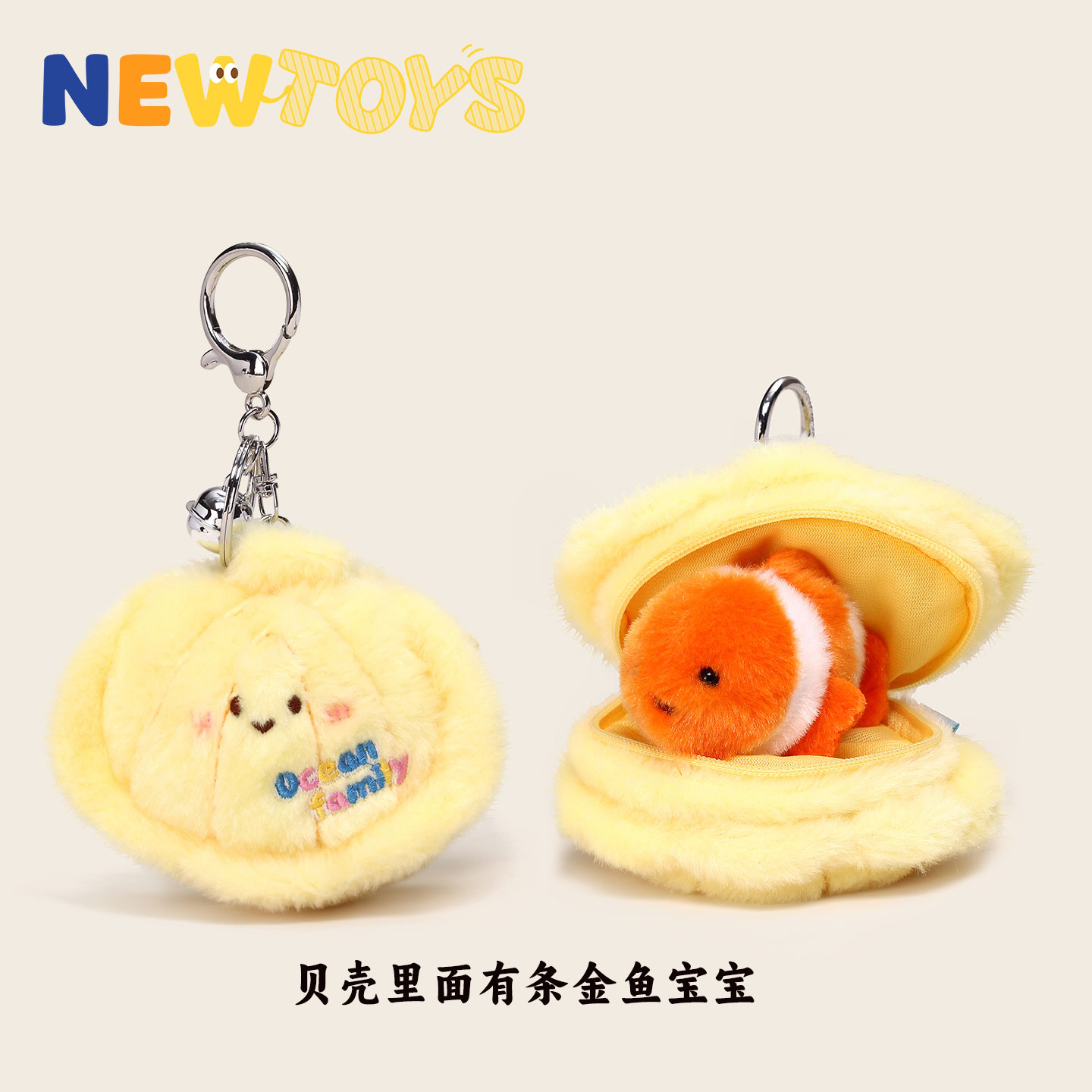 NewToys可爱海洋动物贝壳鲨鱼宝毛绒公仔书包挂件玩偶礼物钥匙扣