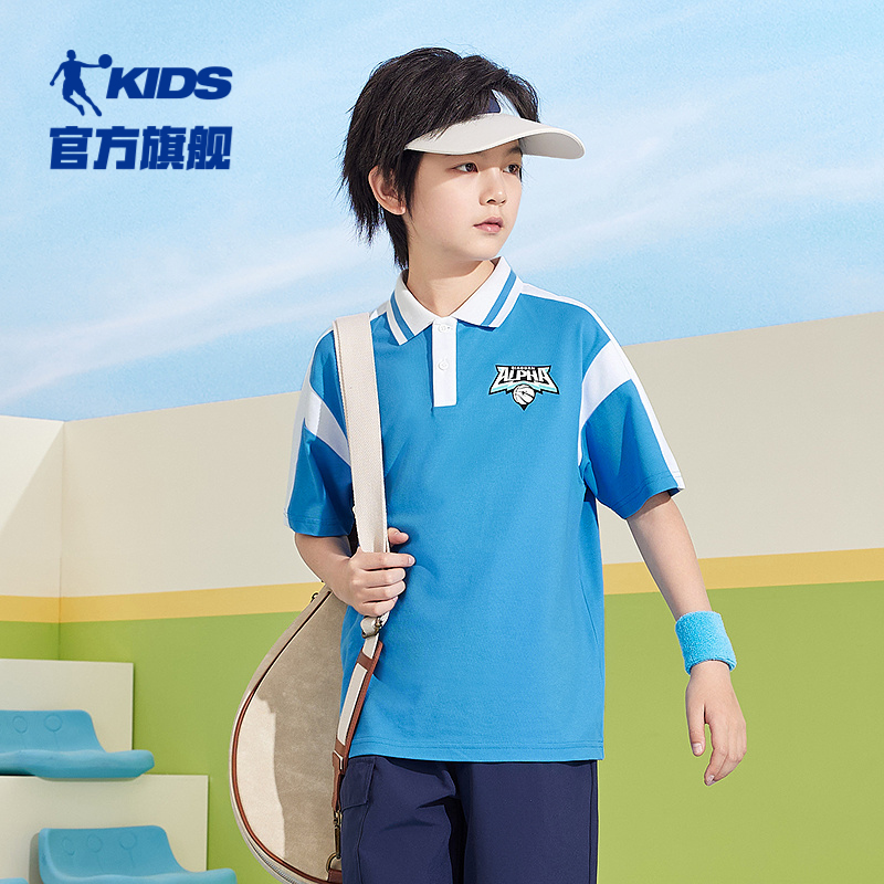 乔丹童装男童翻领短袖大童运动T恤2025夏季新款儿童POLO衫冰感短t