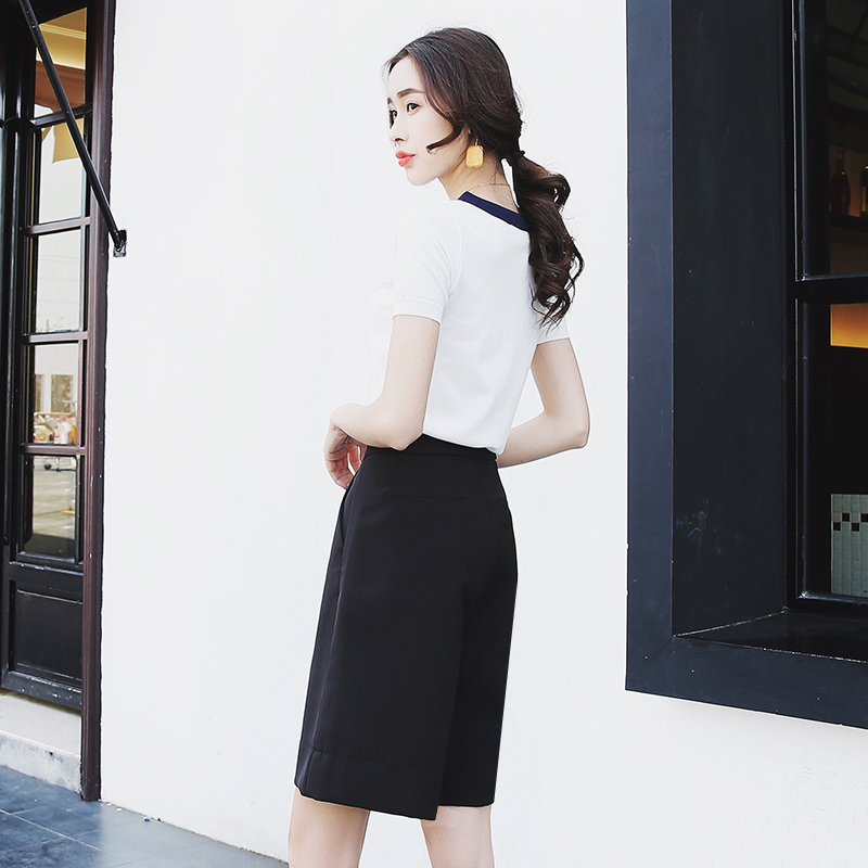 五分中裤女夏季高腰阔腿韩版宽松西装短裤雪纺薄款休闲学生潮ins