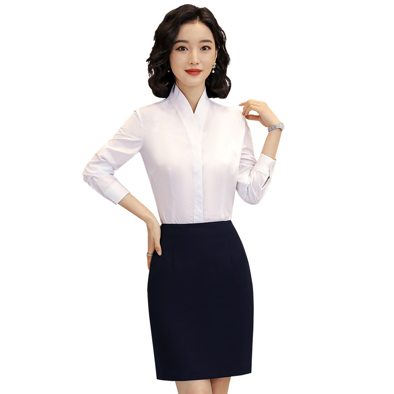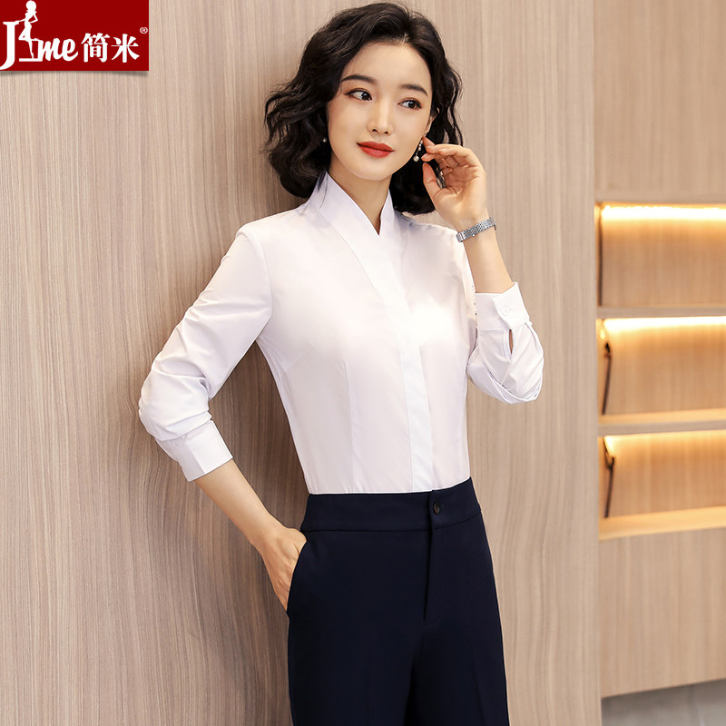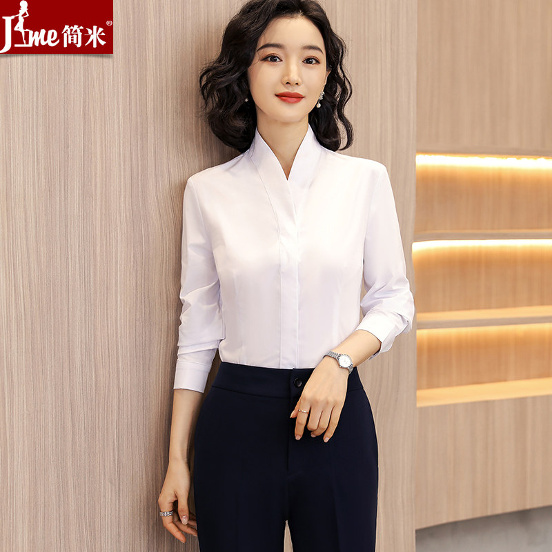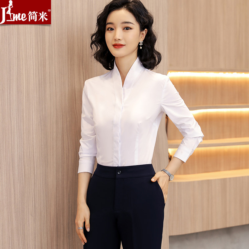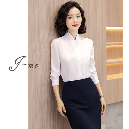 职业装白色衬衫女设计感小众春秋气质收腰长袖衬衣时尚工作服套装