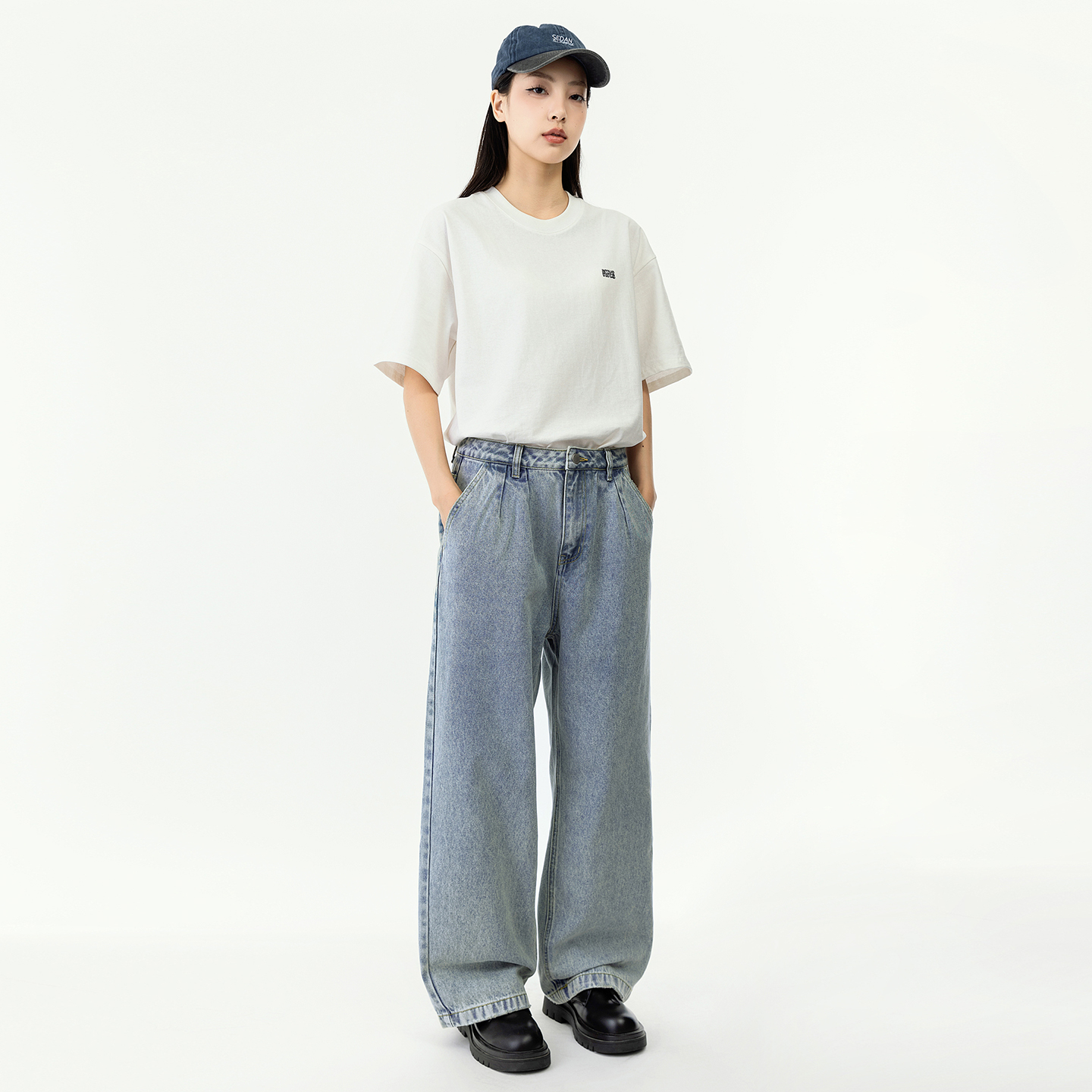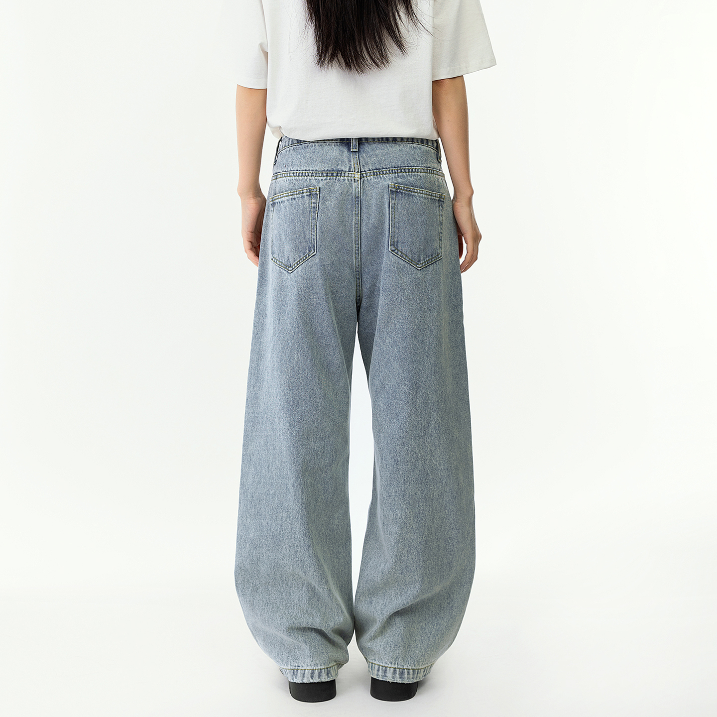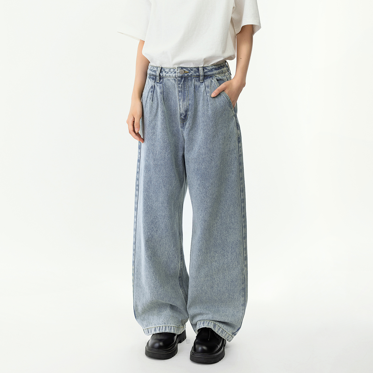 Mannstu 日系复古宽松工装直筒休闲水洗牛仔裤女情侣装中性长裤男